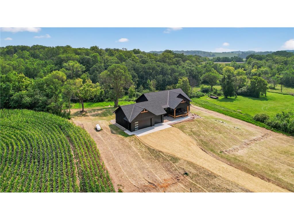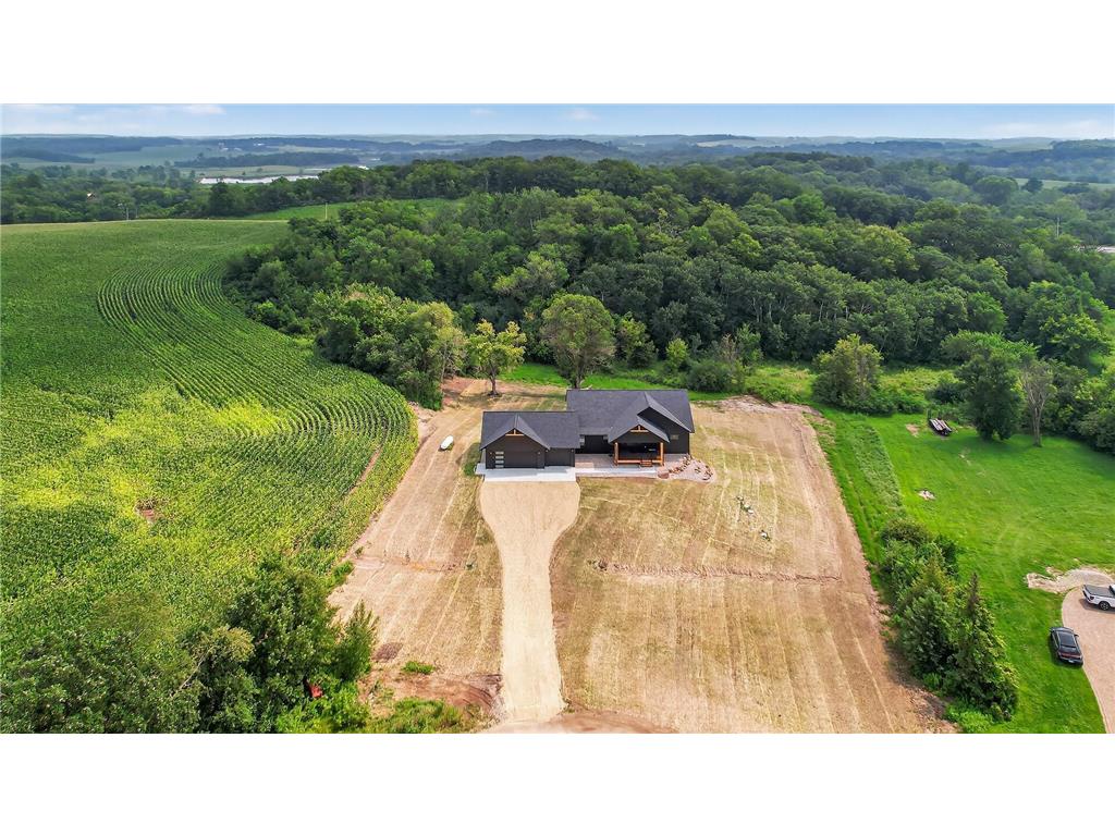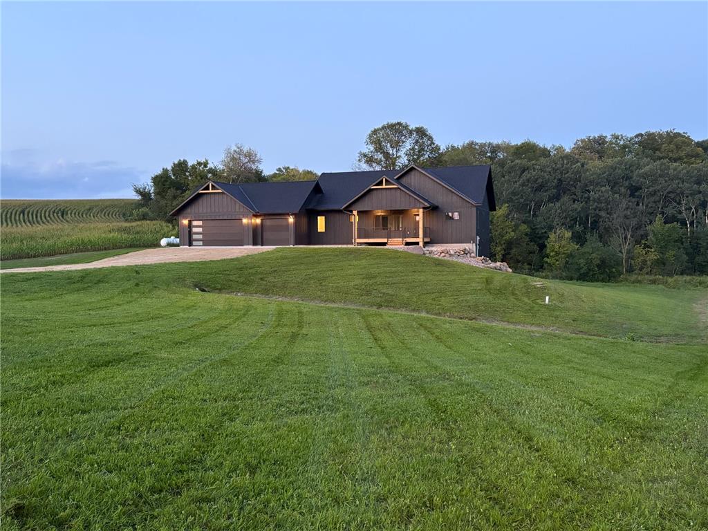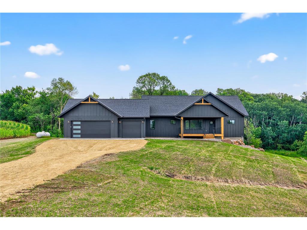 This beautifully designed walkout-rambler offers the perfect blend of modern comfort and style! Set on 1.63 acres, the home features striking black siding complemented by rich cedar accents and a large front porch, offering standout curb appeal in a peaceful setting. Inside, you’ll find 9-foot ceilings (10-foot tray ceilings in the living room and primary) on both levels and an abundance of natural light that enhances the spacious, open layout. The main level includes an open concept kitchen/dining/living area, a private primary suite, bedroom, ½ bath, and a mudroom with a separate laundry room. The kitchen has been completely custom built with beautiful white shaker cabinets, quartz countertops, top-of-the-line SS appliances, a large island, and walk-in pantry. The finished lower level includes a large great room, 3 bedrooms, and 2 full baths. Wanting more space? Footings with pilings have been added outside to make a deck or a sunroom an easy add-on. With winter around the corner, the home’s energy-efficient design keeps utility costs low and comfort levels high all season long. Built with integrity, thought, and heart, this home is ready for memories to be made!