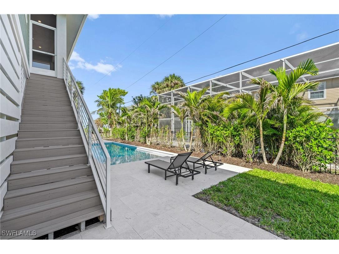 Luxury NEW CONSTRUCTION Home Fort Myers Beach Steps from the Gulf! Stunning NEW CONSTRUCTION coastal pool home by Gary Lau completed in 2025, located just 250 feet from the beach on the quiet and highly sought-after Hercules Drive. This ELEVATED three-bedroom, three-bathroom residence blends superior craftsmanship, elegant design, and effortless coastal living in one of the most desirable neighborhoods on Fort Myers Beach. Built with all-concrete and steel construction, this home is designed to last, featuring moisture, termite, and bug-resistant materials, an aluminum roof with no fasteners to replace, and maintenance-free stucco siding. The elevated structure includes a 10-foot clear lower level ideal for oversized vehicle or trailer storage and is elevator-ready with front porch clearance for future installation. Inside, the open-concept floor plan includes a spacious great room and an entertainer’s kitchen complete with custom cabinetry, quartz countertops, and top-tier stainless steel appliances. The living area flows seamlessly to a large covered balcony that overlooks the private pool and offers beautiful Gulf glimpses. High ceilings, abundant natural light, and coastal-inspired finishes create an airy and sophisticated ambiance throughout the home. Outdoor living is maximized with a screened-in, waterproofed lanai featuring integrated gutters, a covered front porch, and sunset-view balconies. The home is also prepped with hot and cold water hookups for optional outdoor showers in two locations. This peaceful, full-time-resident neighborhood offers tranquility with no short-term rentals. Enjoy being just a short stroll to beach access and a nearby fishing pier, perfect for morning casts or evening walks. Additional features include a home audio system installed in the main living and lanai areas, pre-wired for expansion to additional zones, as well as a security system with five cameras, DVR with remote access, and configurable alerts. An on-demand electric water heater ensures you’ll always have hot water when you need it. Whether you're looking for a permanent coastal residence or a luxurious beach retreat built for generations, this exceptional home offers unmatched quality, comfort, and location.