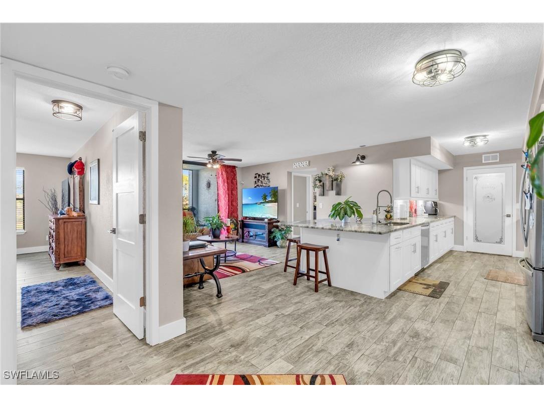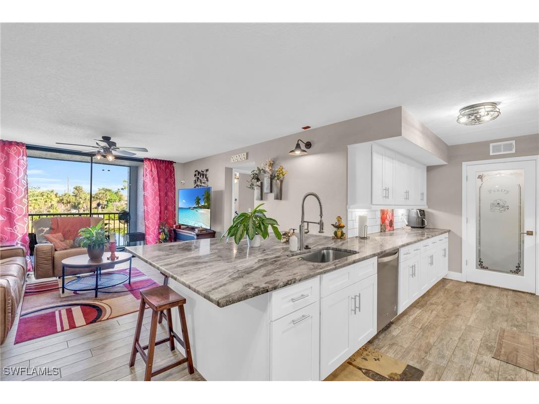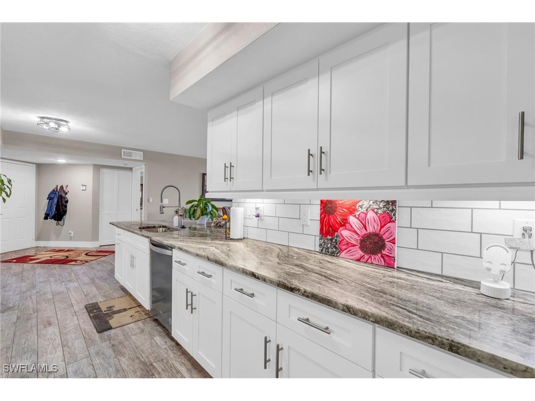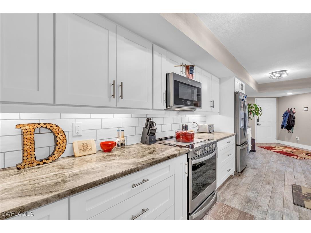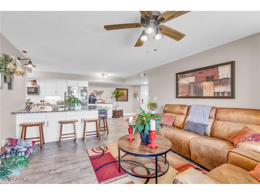 Discover modern living at its best in this beautifully renovated condo located in the highly sought-after Musa at Daniels community. This stunning home combines elegance, comfort, and convenience—perfect for homeowners or investors seeking a move-in-ready property in one of Fort Myers’ most desirable areas. Featuring updated kitchen cabinetry, Level 4 granite, brand-new A/C UNIT (September of 2025), stainless steel appliances, luxury plank tile flooring, Solid core doors thought out, undercabinet lighting and lake views!!! This condo offers a fresh, contemporary feel throughout. The open-concept design seamlessly connects the spacious living and dining areas, leading to a private screened lanai that is ideal for relaxing or entertaining. The primary suite offers a tranquil retreat, featuring a walk-in closet and an updated en-suite bathroom. Residents of Musa at Daniels enjoy resort-style amenities including two swimming pools, tennis courts, a fitness center, a clubhouse, and beautifully landscaped grounds. The community is centrally located—just minutes from shopping, dining, beaches, RSW Airport, and I-75. Adding even more value, enhancing convenience for residents. Additionally, this property offers a 4% VA assumable interest rate loan, providing an exceptional financing opportunity for qualified buyers seeking to benefit from lower monthly payments. Don’t miss your chance to own this exceptional condo in one of Fort Myers’ friendliest and fastest-growing neighborhoods. Schedule your private showing today to experience all that Musa at Daniels has to offer!