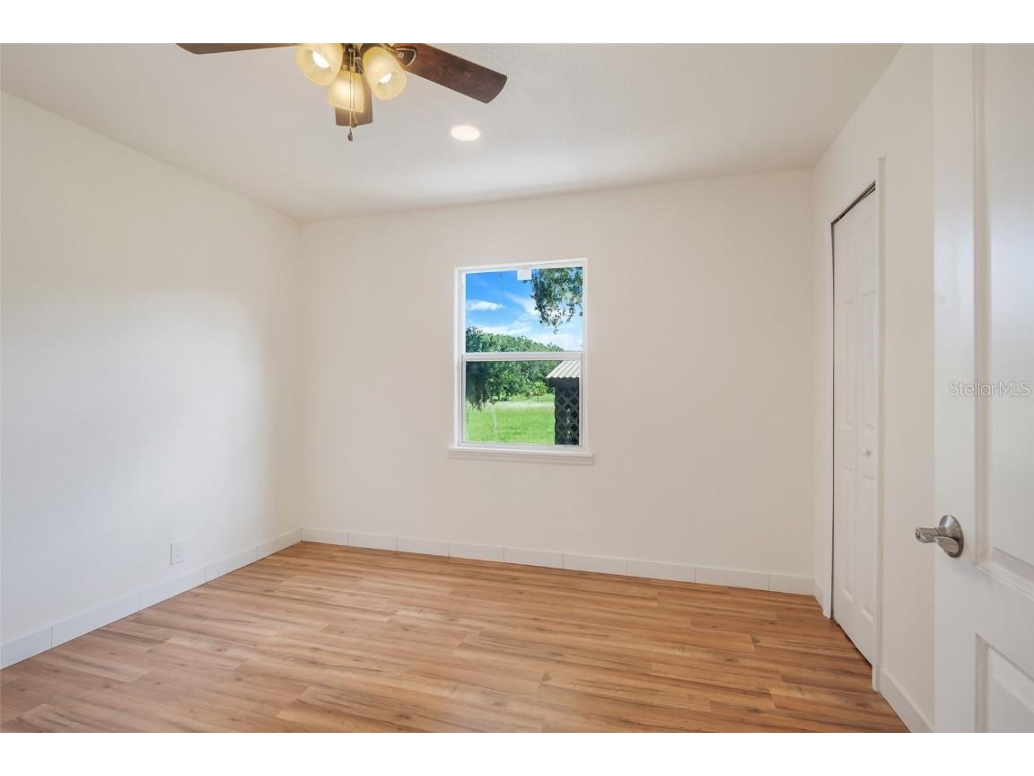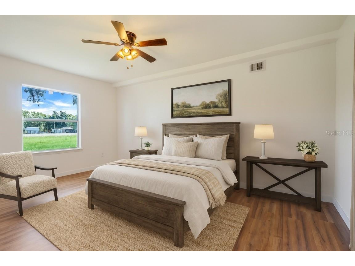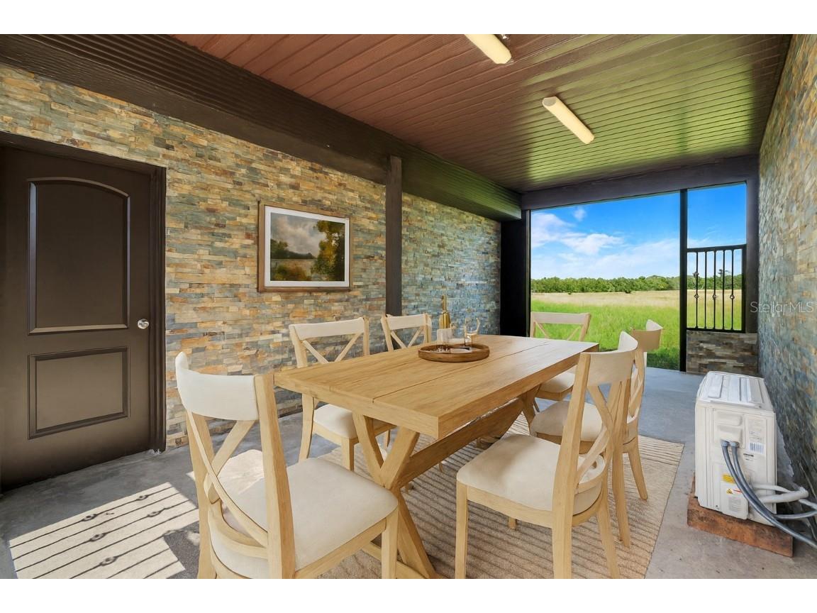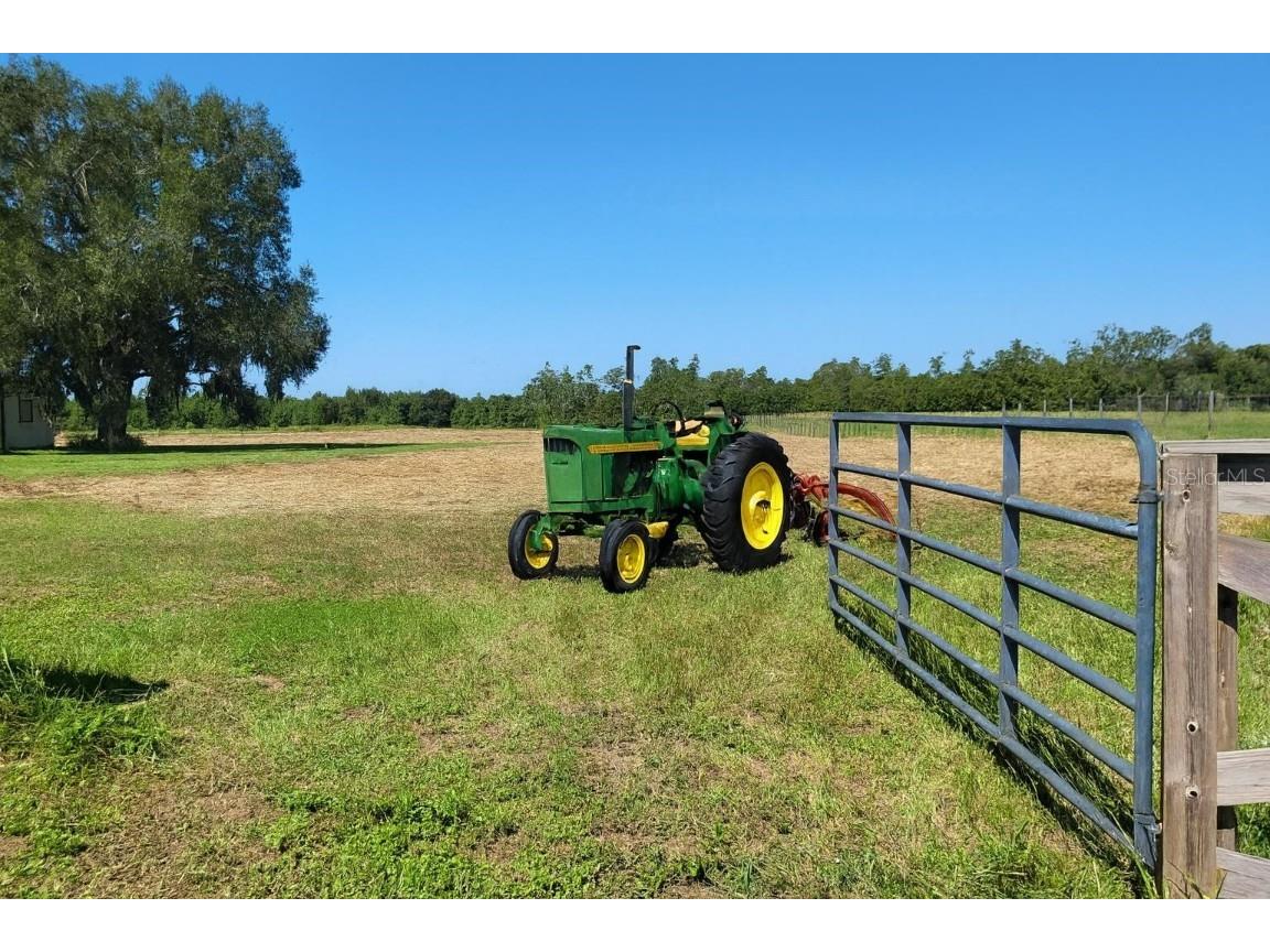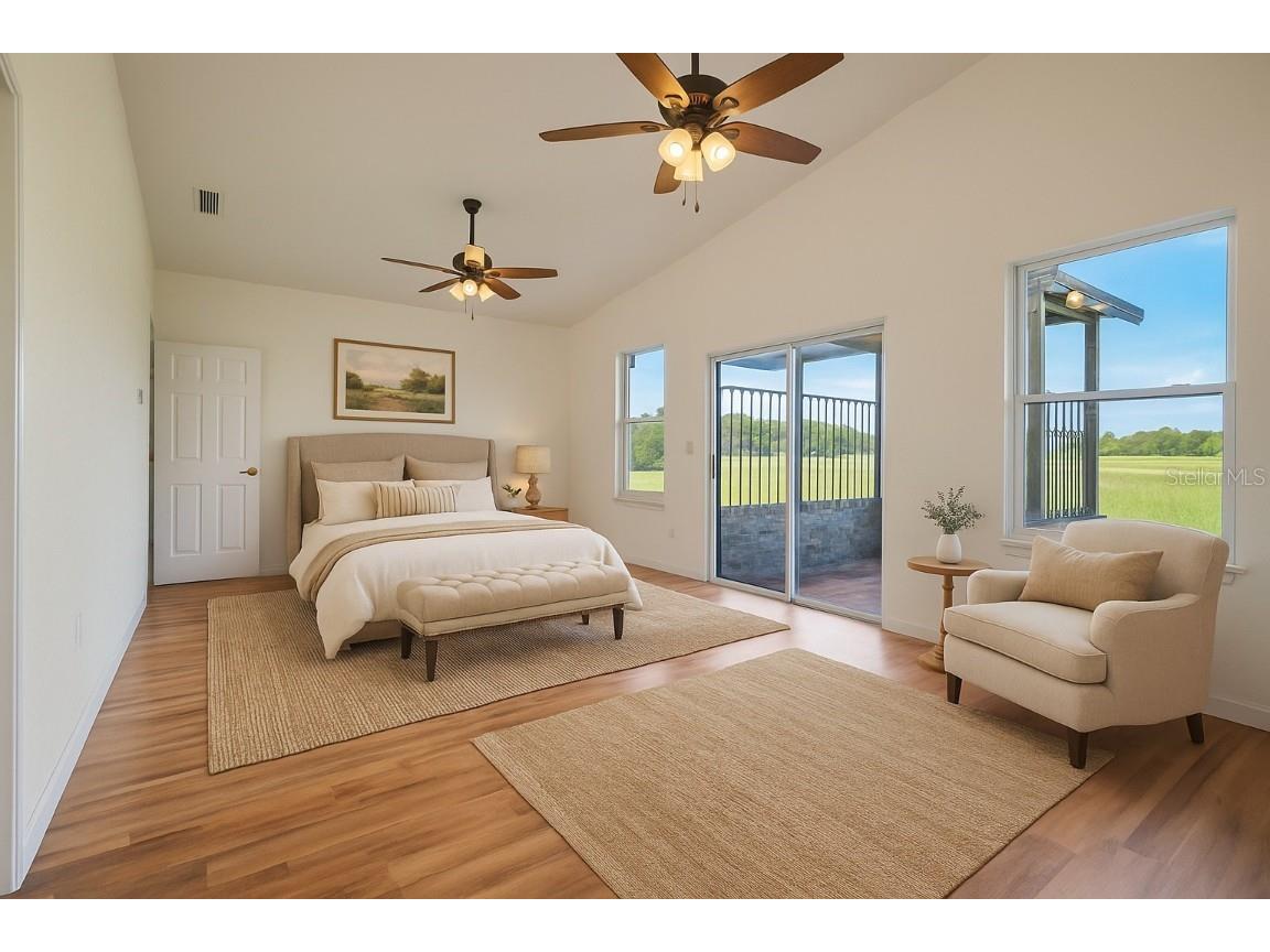 One or more photo(s) has been virtually staged. The main part of the home was built in 2006. This could be utilized as a 2 unit AirBNB. Ten acres, five Bedrooms, four Baths & two Garages make up this compound. The in-laws will love the totally renovated-free standing Studio apartment complete with a breezeway and its own 1 car garage. Ten acres of freedom at this retreat just 2.5 miles from State Rd 50, Central Florida’s main east-west corridor. This tastefully renovated 4-bedroom, 3-bathroom home, dual Master Bedrooms, complete with an oversized 2-car garage, offers unparalleled privacy and modern comfort. NOTE: with ample dry flat land for parking space and the possibilities of a free-standing workshop/storage addition, the air-conditioned suite, equipped with its own bathroom & kitchenette is also suitable as an office space, separate from the privacy of your home.... the possibilities are endless ! 2006: A major addition was made to the original home, including 2 Master Bedrooms with Baths, a living room, the laundry room and a dual entry garage. The smaller garage door has multi uses: golf cart, a rider mower and/or an all-terrain vehicle. 2023: An extensive remodel & update of both the main home and the detached in-law package was performed. The project includes brand-new ceramic and laminate flooring throughout, complemented by new appliances, new cabinets, new countertops, and bathroom fixtures. The home features new windows and has been freshly painted inside and out. Both the main house and the in-law suite boast new shingles, ensuring long-lasting protection. Enjoy the serenity of your morning coffee on the easterly facing front porch, surrounded by the sights and sounds of nature. Watch the sunsets from Westerly facing Primary Bedroom Patio. The property is secured with an automatic front gate and an upscale wooden fence along Bay Lake Road. This rural Lake County gem is equipped with a money-saving private well featuring a new pump and filtration system. With 10 acres of open space, there's ample room for horses, cows, a barn, a multi-bay utility building, tennis court or cultivate hay which commands up to $130 a roll.. Schedule your private showing today and experience the freedom and tranquility this unique property offers.