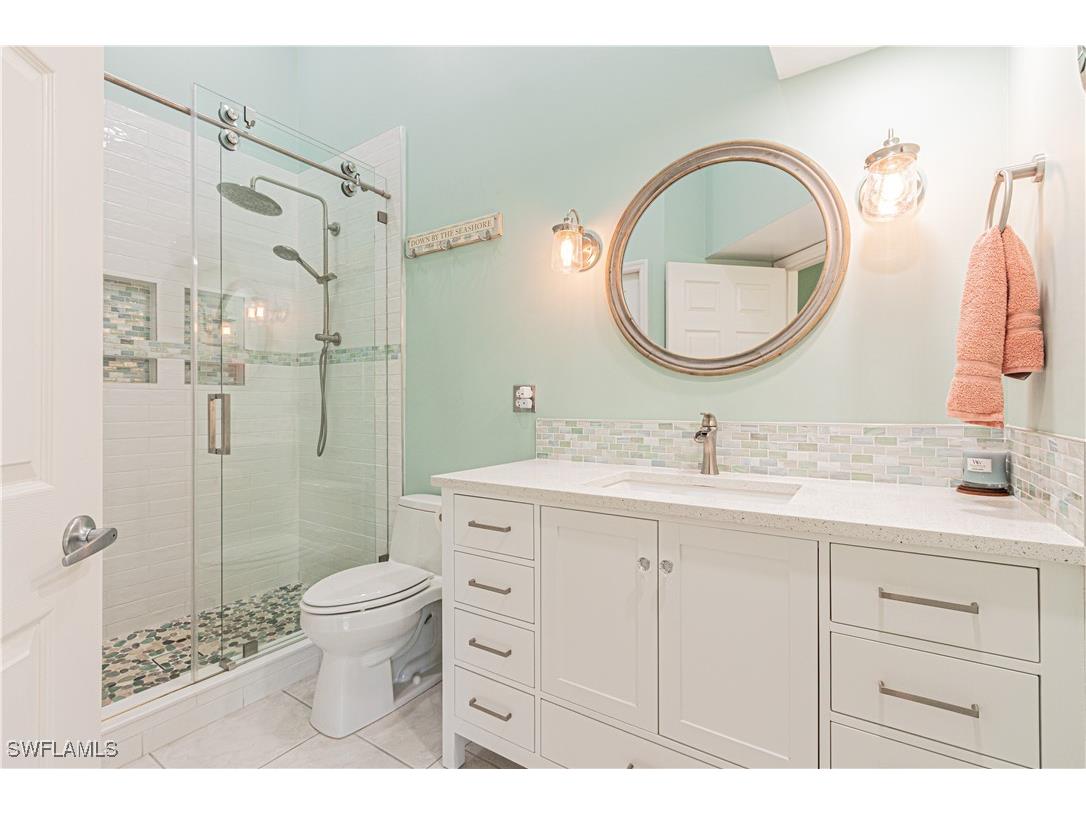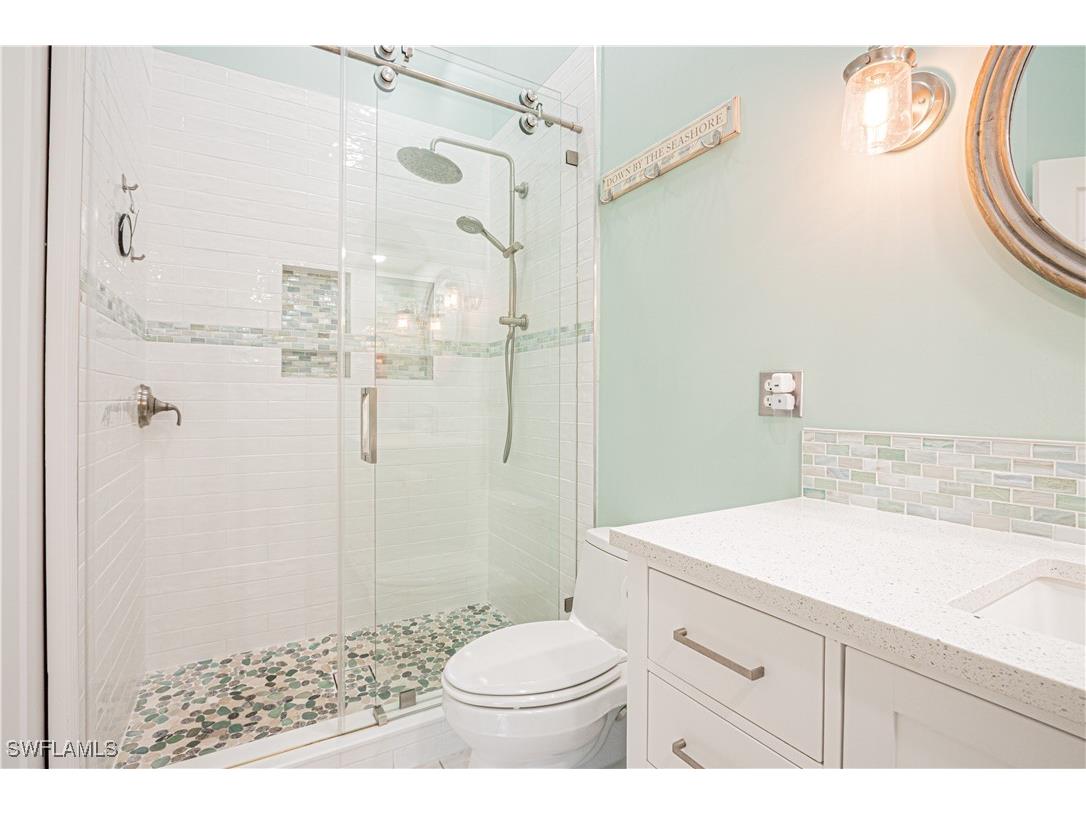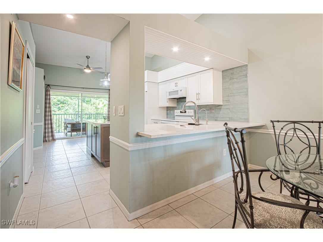BEAUTIFULLY UPDATED AND READY FOR IT'S NEW OWNERS! Located in the highly desired Bay Forest Community, this unit will appeal to the most discerning buyer. This home has a brand new air conditioner and all of the ductwork replaced. The kitchen has an oversized island with quartz countertops, upgraded backsplash, upgraded lighting and a wine cooler. Both bathrooms have been completely remodeled with beautiful coastal tile and vanities. The den offers added space for a home office or extra sleeping space for your guests. This home comes with a detached one-car garage and a common elevator. Enjoy all Bay Forest has to offer including a newly built boardwalk with an area to launch your kayak. Meet your friends at the clubhouse for an afternoon in the pool and spa or a game of pickleball, tennis, bocce or shuffleboard . There is also a well-equipped gym for fitness enthusiast. This community is great for full-time and part-time residents alike. If the beach is for you, then you will appreciate the short drive or bike ride to Delnor-Wiggins State Park to the south or Barefoot Beach to the north. Come see all this wonderful community has to offer!