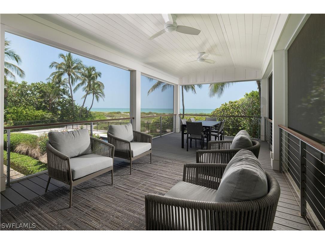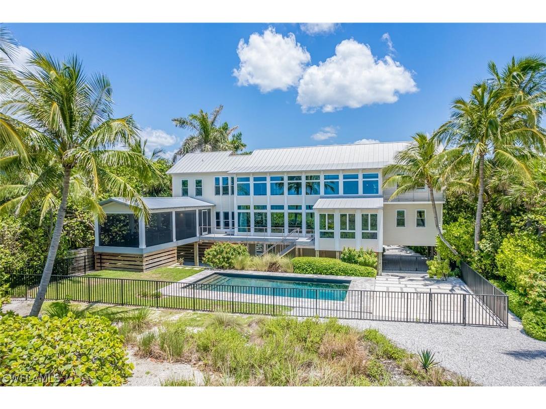 Nestled along Captiva Island’s most coveted stretch of the Gold Coast, this exceptional beachfront private estate is surrounded by lush tropical landscaping, offering the ultimate blend of serenity and sophistication. Behind its unassuming beach house exterior lies a strikingly modern, European-inspired interior that radiates style and comfort. The main residence and guest house combine to offer 7 bedrooms and 5.5 baths, designed with expansive open living spaces and refined finishes throughout. Soaring ceilings, rich hardwood and shell stone flooring, and stunning custom woodwork create a timeless coastal ambiance. Walls of glass showcase panoramic Gulf of Mexico views and breathtaking sunsets from two levels of open living areas. Outdoors, enjoy the dramatic beachfront pool, spacious screened lanais, and a rooftop sundeck perfect for soaking in endless ocean vistas. With ample additional yard space offering room to expand, this architectural gem is a rare opportunity for those seeking a distinctive, sophisticated beach retreat on Captiva Island’s most desirable coastline.