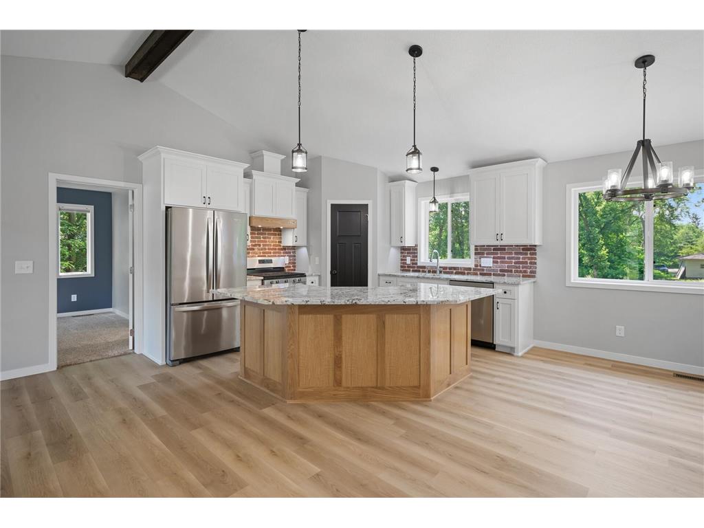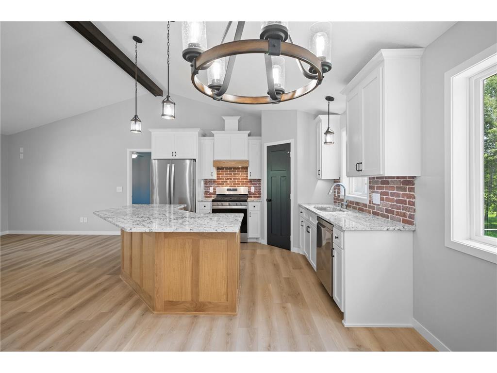 Welcome to this gorgeous former model home, showcasing thoughtful design, premium finishes, and modern comfort throughout. This better than new rambler offers the perfect blend of style and functionality with :~Designer Kitchen: Beautiful enamel cabinetry, granite countertops, large center Island, walk-in pantry, and stainless steel appliances-perfect for entertaining or everyday living.~Open & bright layout:Vaulted ceilings with exposed beam detail, warm wood, LVT flooring and spacious living areas filled with natural light.~Finished lower level:Custom shelving, stylish barn doors, and plenty of space for relaxation, gatherings, or a home office.~Outdoor Oasis: Huge maintenance free deck, fully fenced backyard, Storage shed, and professional landscaping.~Garage Goals: Oversized 3-car garage, fully finished with room for vehicles, storage and hobbies.~Spacious Bedrooms: All generously sized with walk-in closets, including a luxurious owner's suite.This home is truly a "10"-offering comfort, convenience and timeless design in a move-in ready package. You will not find a more meticulously cared for home on the market. Don't miss your chance to call it yours- Schedule your private tour today!