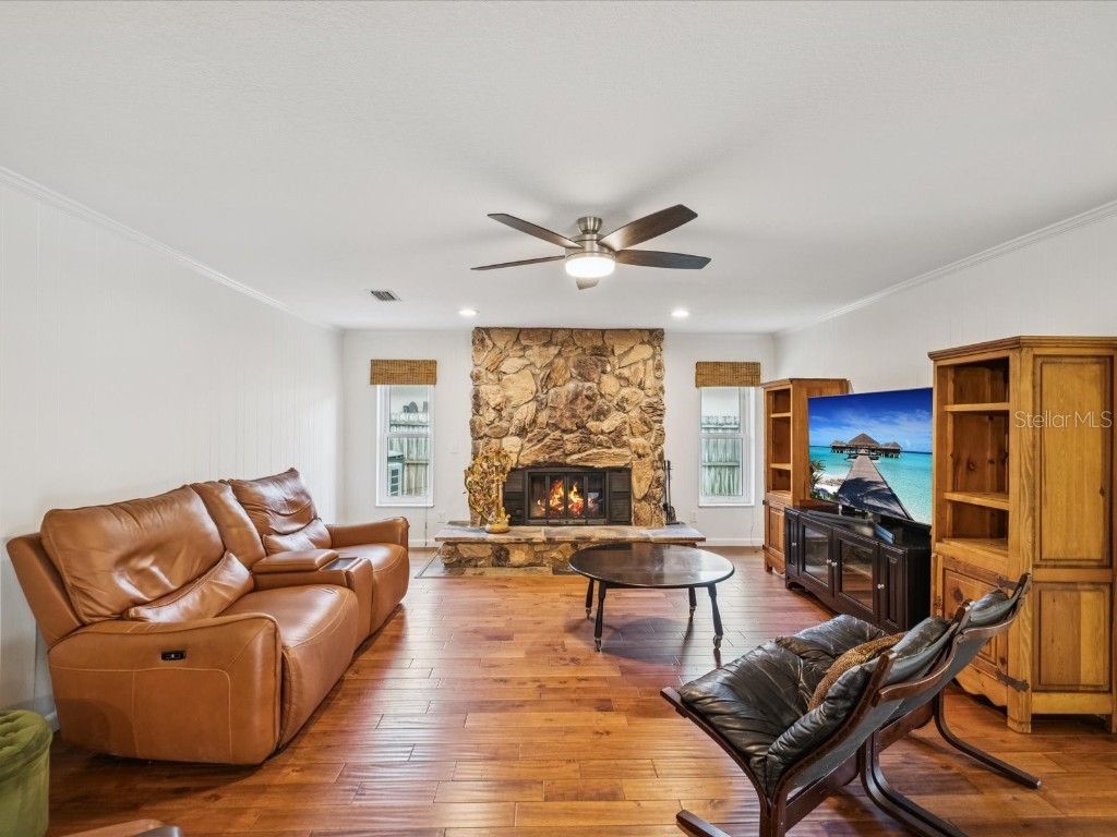 Fireplaces: Family Room, Stone, Wood Burning, Masonry