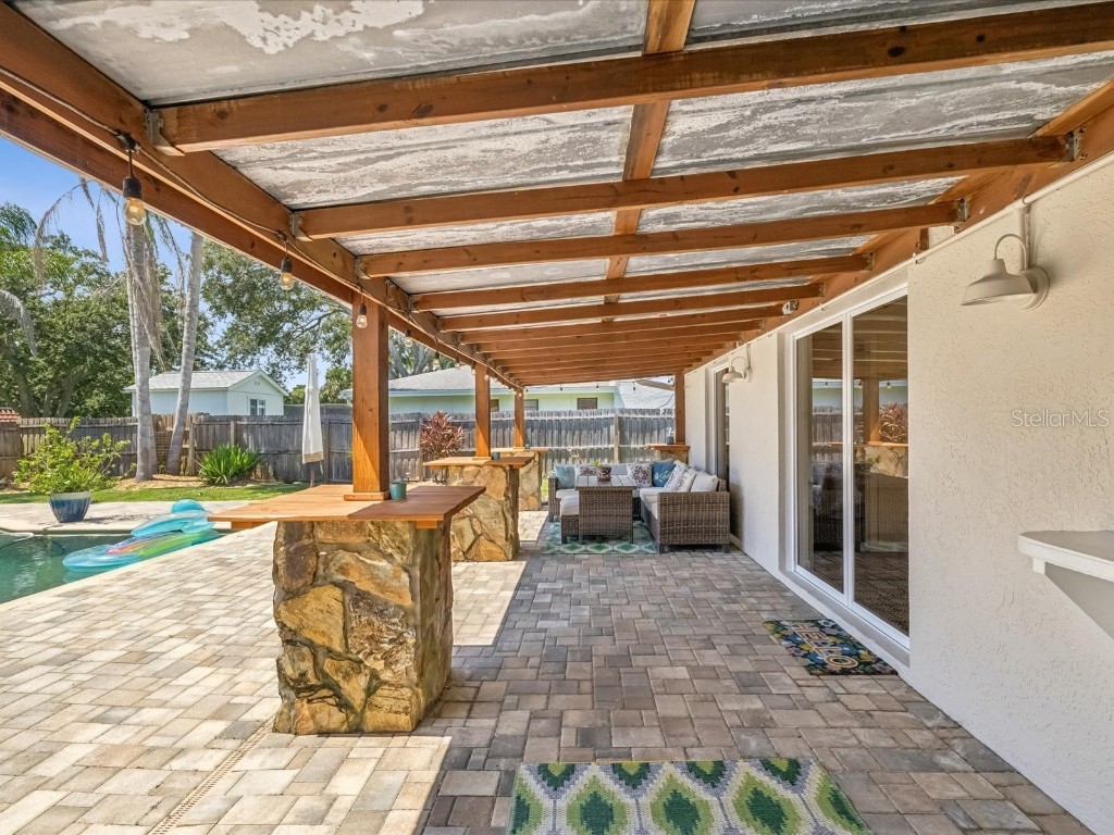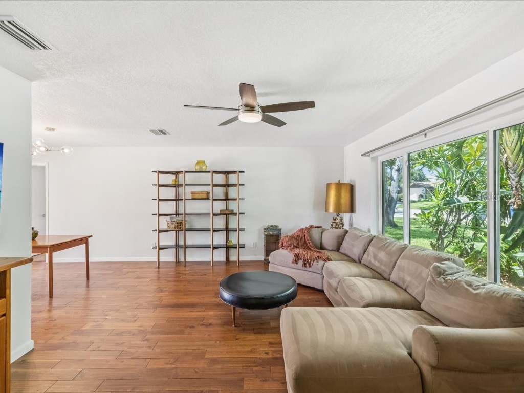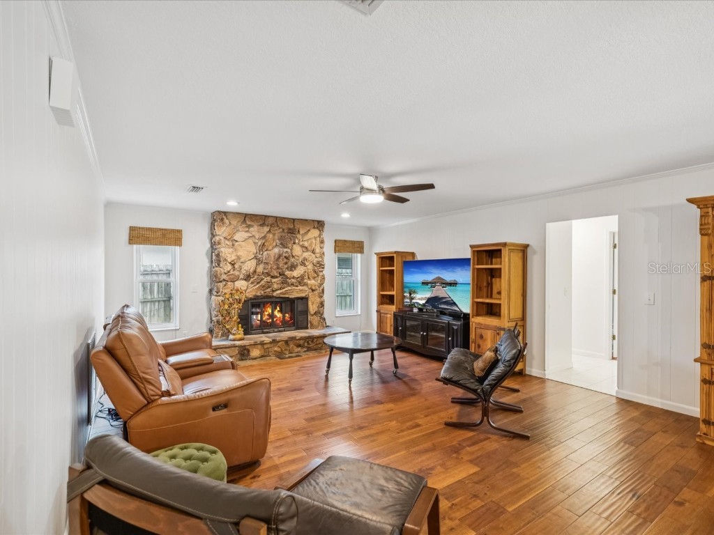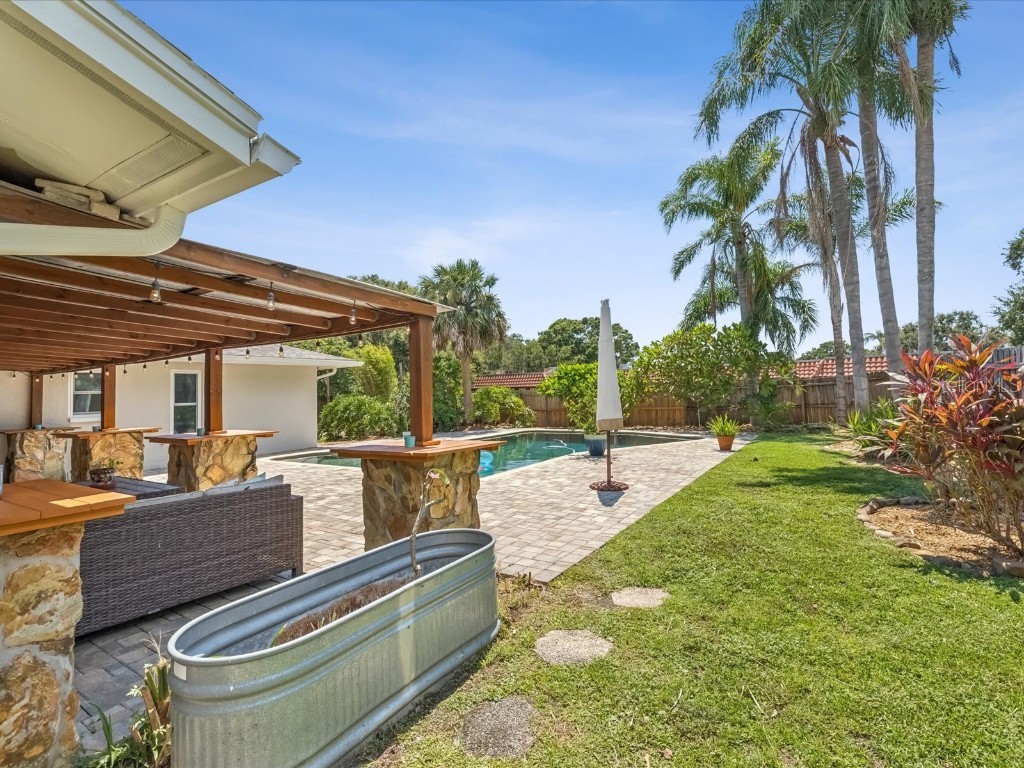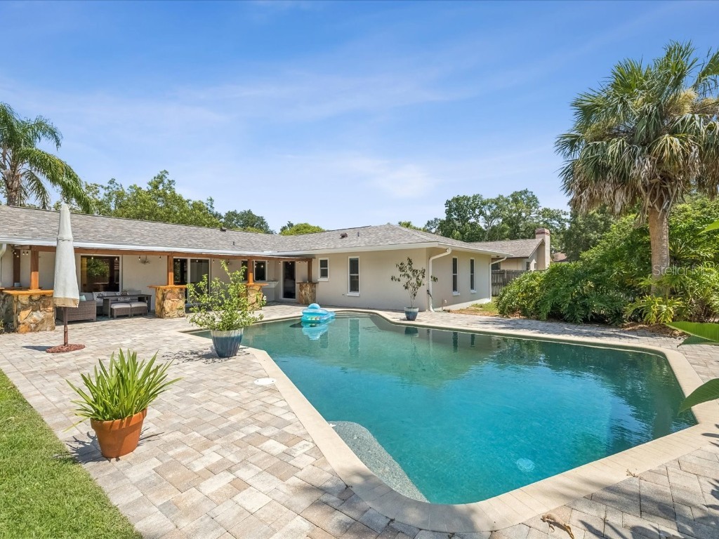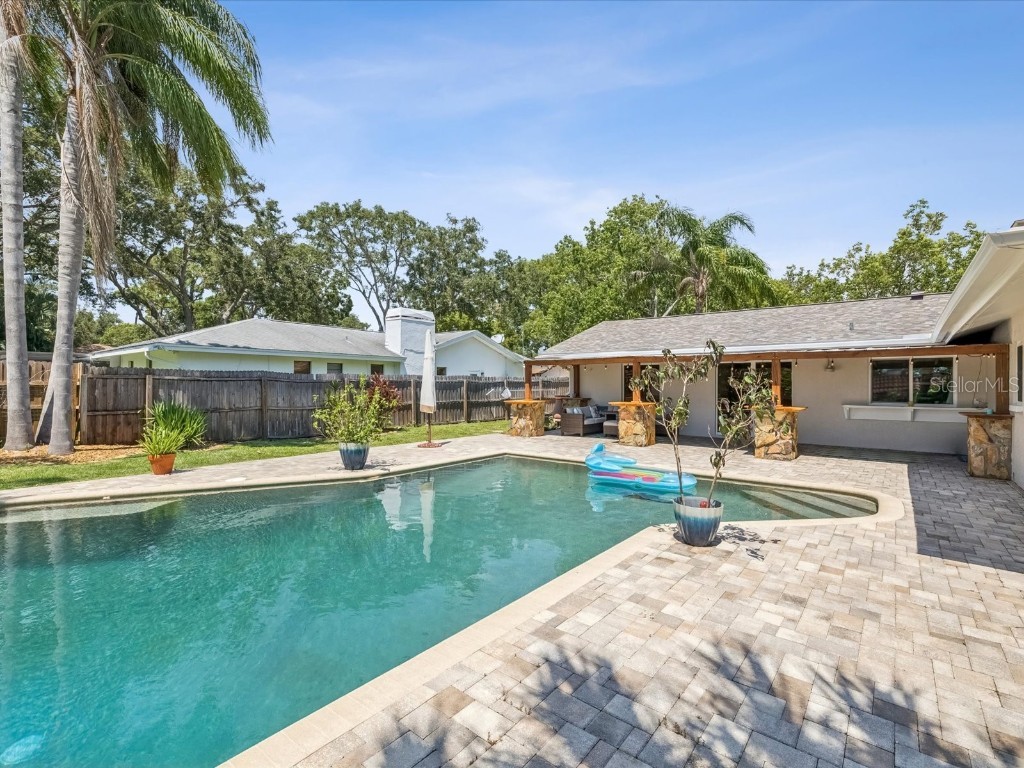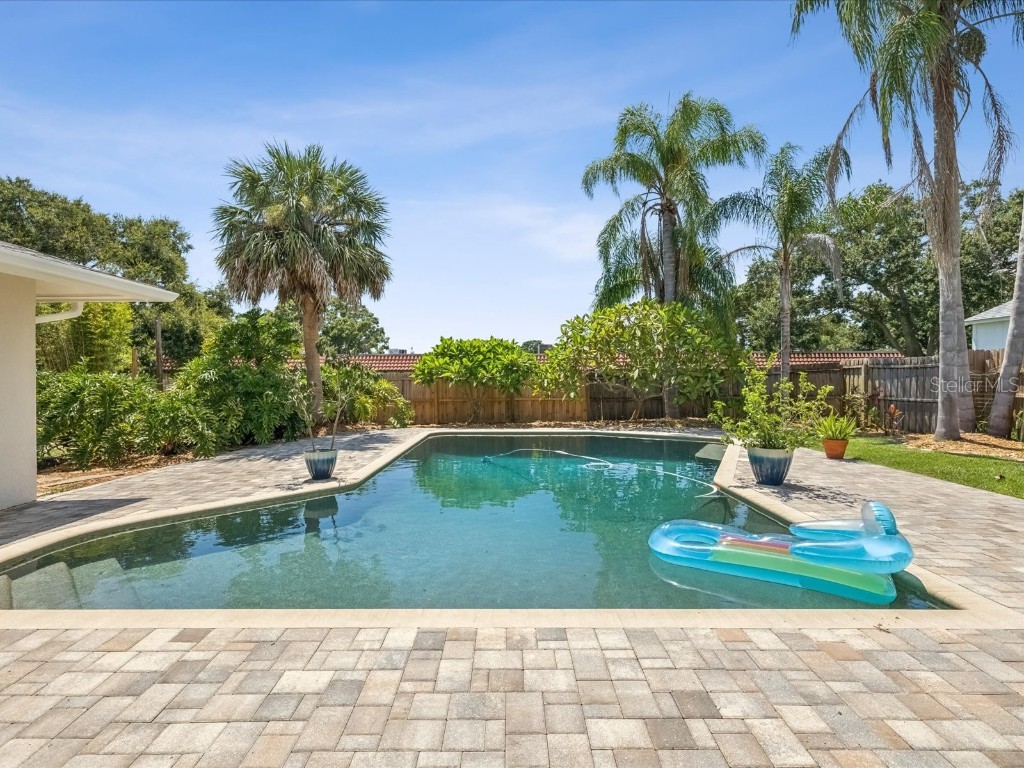 Under contract-accepting backup offers. Welcome to your slice of Dunedin paradise! This beautifully updated 3-bedroom, 2-bath pool home perfectly blends Florida charm with modern comfort—nestled in one of Dunedin’s most desirable golf cart-friendly neighborhoods. Step inside to find 1,832 sq ft of bright, open living space with a split-bedroom layout for privacy. The primary suite opens directly to the pool—ideal for a morning swim or a quiet evening retreat. Acacia hardwood floors, a cozy family room with fireplace, and sliding doors from multiple rooms create effortless indoor/outdoor living. Your backyard is pure resort living. The massive 20' x 30' saltwater Pebble Tec pool with a 10-ft deep end invites you to relax and unwind every day. Surrounded by a fully fenced yard, firepit area, and glowing sunset views, it feels like being on vacation in your own backyard. Enjoy peace of mind with major recent upgrades: New roof (2024) Impact windows (2021) Hurricane-rated garage door (2024) Updated electrical panels (home & pool 2022) New water heater (2025) New saltwater system, variable-speed pump & filter (2024) Additional enhancements include fresh interior and exterior paint, updated lighting and fans, and smooth retextured ceilings—no popcorn here! High and dry—no flood or evacuation zone. Cruise your golf cart to downtown Dunedin’s restaurants, boutiques, and year-round festivals, or head to Honeymoon Island, the Pinellas Trail, or the revitalized Dunedin Golf & Country Club just minutes away. Come experience why Southern Living named Dunedin “The Hidden Florida Getaway That Should Be On Your Radar.” Your vacation lifestyle starts here—schedule your private tour today!