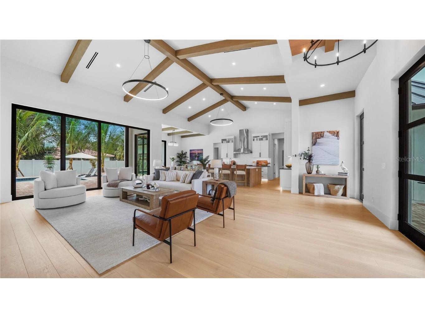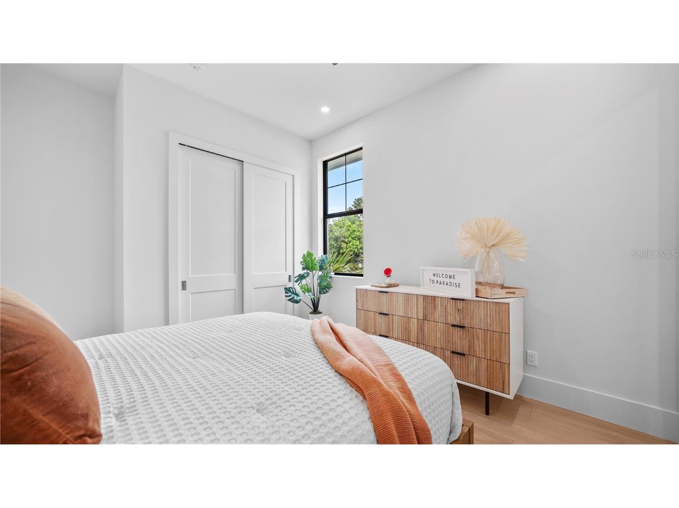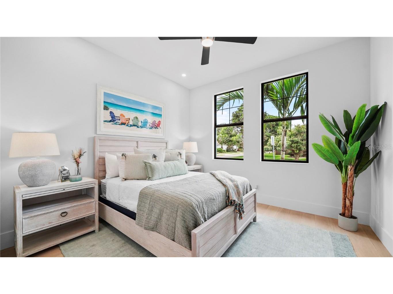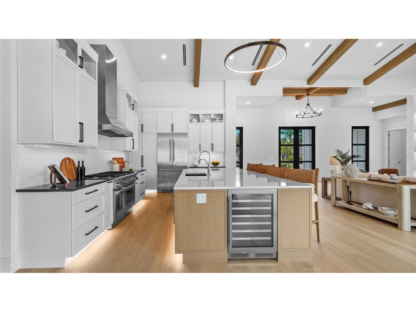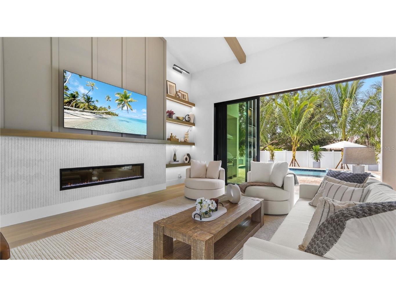 Welcome to 1915 Tulip Drive – a beautiful Single Story home you will love! This new construction Modern Coastal Single Story home is located West of the Trail in the preferred Zone X (unshaded) with elevated storm protection and easy access to Siesta Key beaches, Southside Village and Downtown Sarasota. Built strong and stylish by Majestik Homes, this 4 bedroom 4 bathroom residence blends architectural elegance with energy efficiency and storm-ready construction. From the moment you enter through the grand 9-foot doors, you’re greeted by soaring ceilings, expansive glass, and a seamless indoor-outdoor flow that captures Florida living at its finest. The open floor plan centers around a designer great room, a chef’s kitchen outfitted with premium Thermador gas appliances and a dining room that is perfect for intimate dinners and larger gatherings. Designed with both performance and sustainability in mind, this home features energy-efficient lighting, appliances, and insulation systems that reduce consumption without sacrificing comfort. With 2 efficient air conditioning units and a tankless gas water heating system you will enjoy energy efficient heating and cooling year-round. Built with an emphasis on strength and safety, this residence offers peace of mind with a finished floor height of 26’ above sea level and materials selected to withstand Florida’s toughest storms. Every detail—from the block construction to the impact-rated windows—has been thoughtfully engineered to provide long-lasting security and a safe haven for your family. Beautifully staged and thoughtfully designed, this home showcases artwork from some of the local area’s most inspiring artists. Easy to show – you won’t want to miss this exceptional opportunity.