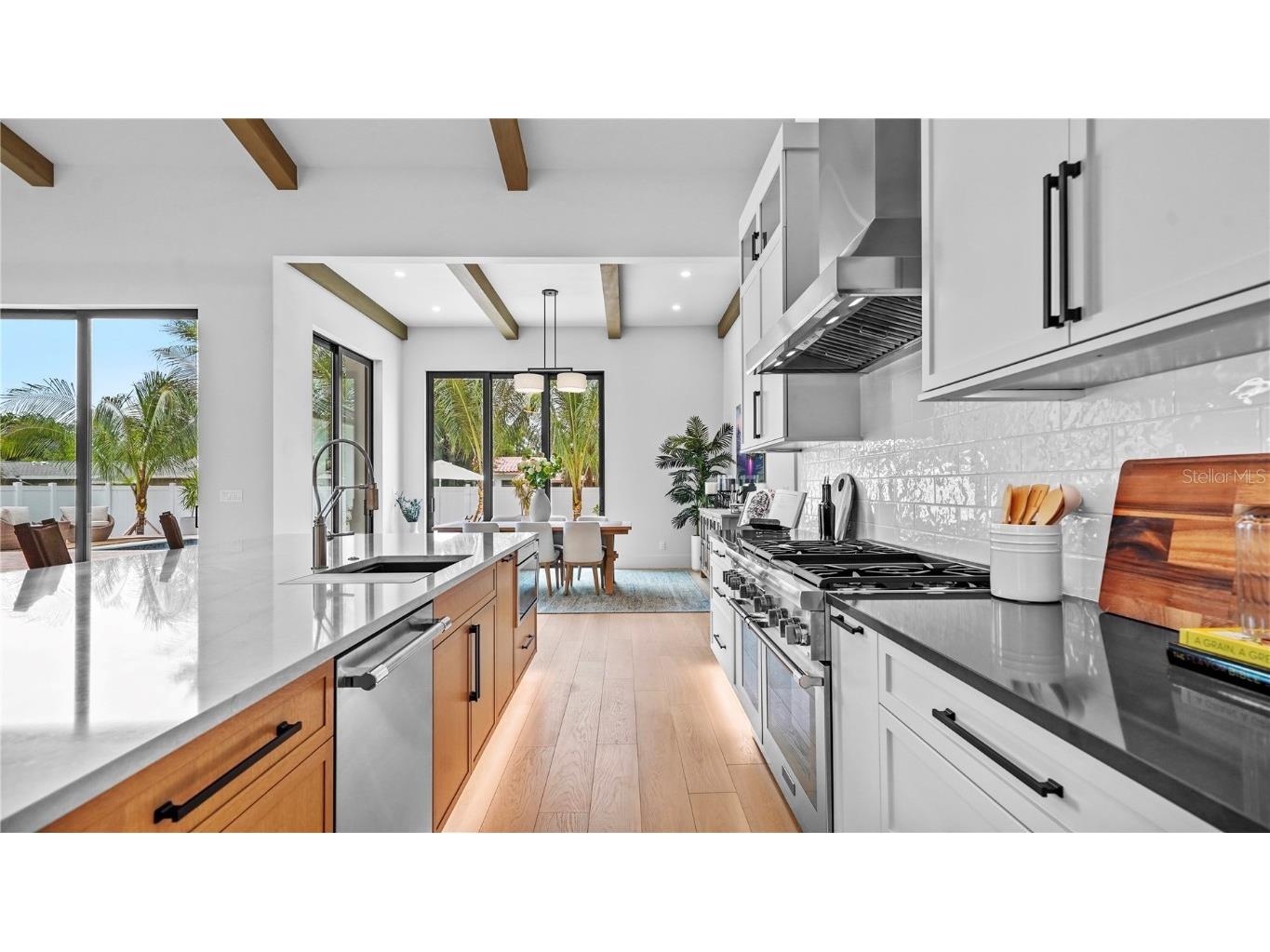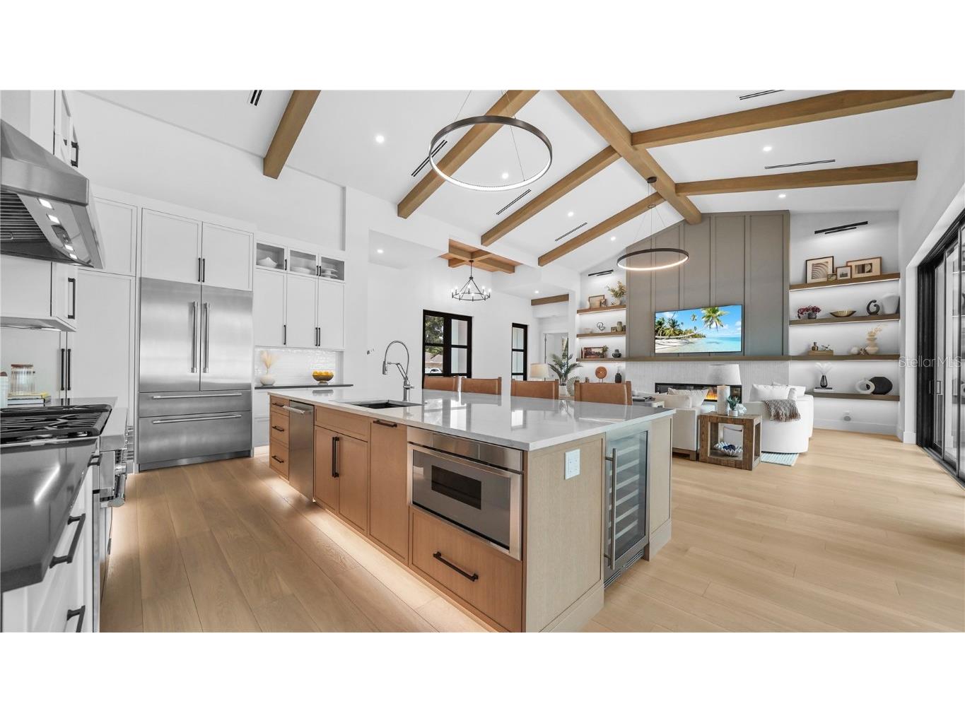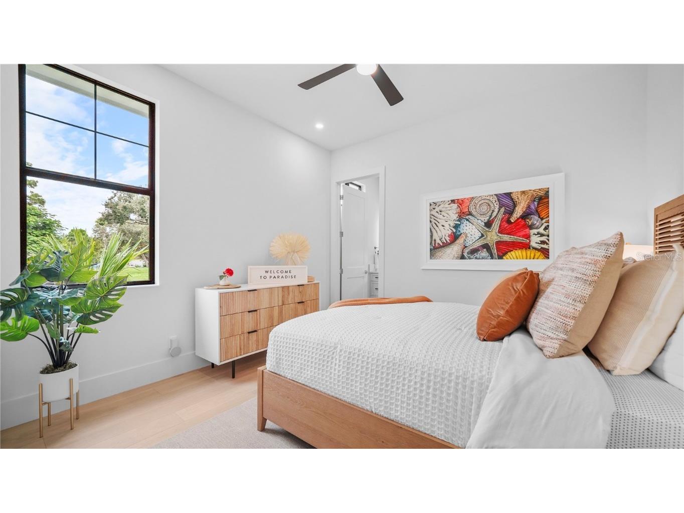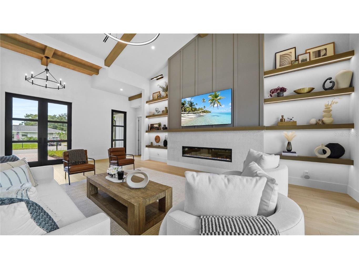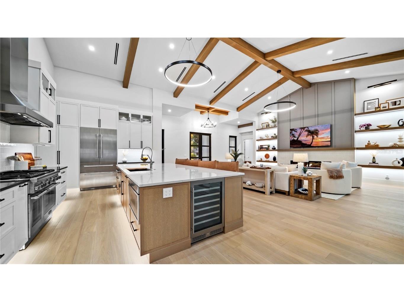 Welcome to 1915 Tulip Drive – a beautiful Single Story home you will love! This new construction Modern Coastal Single Story home is located West of the Trail in the preferred Zone X (unshaded) with elevated storm protection and easy access to Siesta Key beaches, Southside Village and Downtown Sarasota. Built strong and stylish by Majestik Homes, this 4 bedroom 4 bathroom residence blends architectural elegance with energy efficiency and storm-ready construction. From the moment you enter through the grand 9-foot doors, you’re greeted by soaring ceilings, expansive glass, and a seamless indoor-outdoor flow that captures Florida living at its finest. The open floor plan centers around a designer great room, a chef’s kitchen outfitted with premium Thermador gas appliances and a dining room that is perfect for intimate dinners and larger gatherings. Designed with both performance and sustainability in mind, this home features energy-efficient lighting, appliances, and insulation systems that reduce consumption without sacrificing comfort. With 2 efficient air conditioning units and a tankless gas water heating system you will enjoy energy efficient heating and cooling year-round. Built with an emphasis on strength and safety, this residence offers peace of mind with a finished floor height of 26’ above sea level and materials selected to withstand Florida’s toughest storms. Every detail—from the block construction to the impact-rated windows—has been thoughtfully engineered to provide long-lasting security and a safe haven for your family. Beautifully staged and thoughtfully designed, this home showcases artwork from some of the local area’s most inspiring artists. Easy to show – you won’t want to miss this exceptional opportunity.
