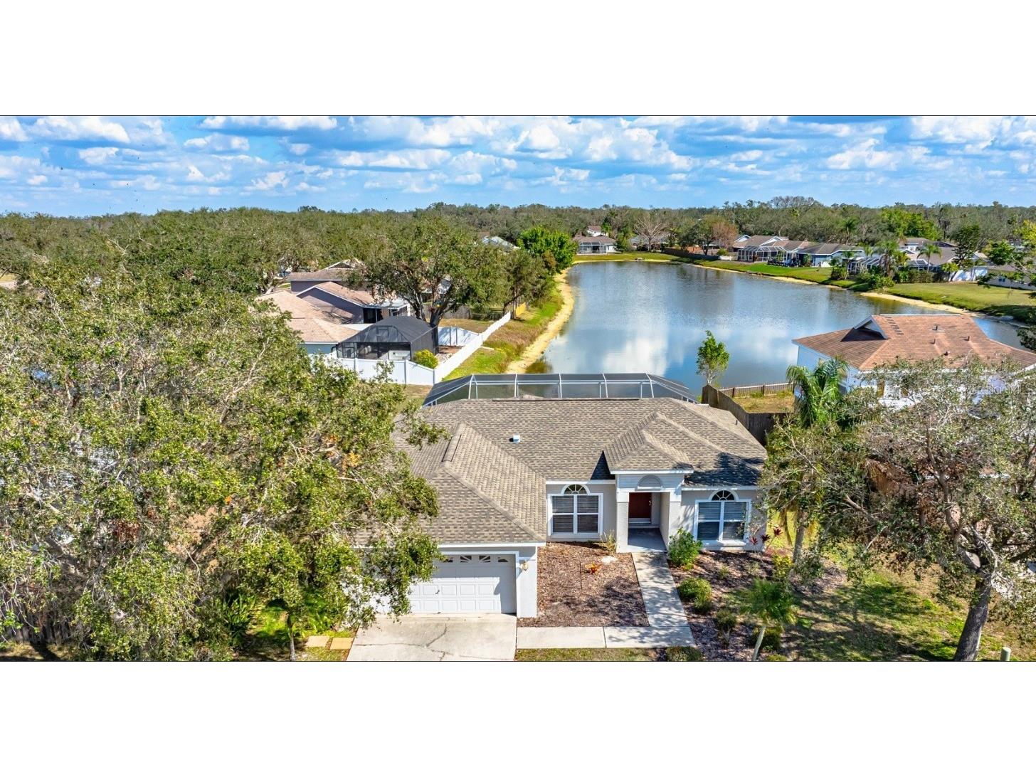 Charming Lakefront Pool Home in Gates Creek! Discover this stunning 4-bedroom, 2-bathroom home with an additional den/office, offering beautiful lake views and a private pool. The heart of the home features a spacious great room with a large granite breakfast bar, perfect for entertaining, while the stainless steel appliances and tile floors add modern elegance. The eastern exposure fills the home with natural light, creating a warm and inviting ambiance. Enjoy the tranquility of lakefront living from your own backyard, complete with a covered lanai and pool deck, ideal for relaxing or hosting guests. The home also offers a 2-car garage and easy access to State Road 64, providing convenience to shopping, dining, and top-rated schools. Recent Updates: New roof in 2024. New water backflow.