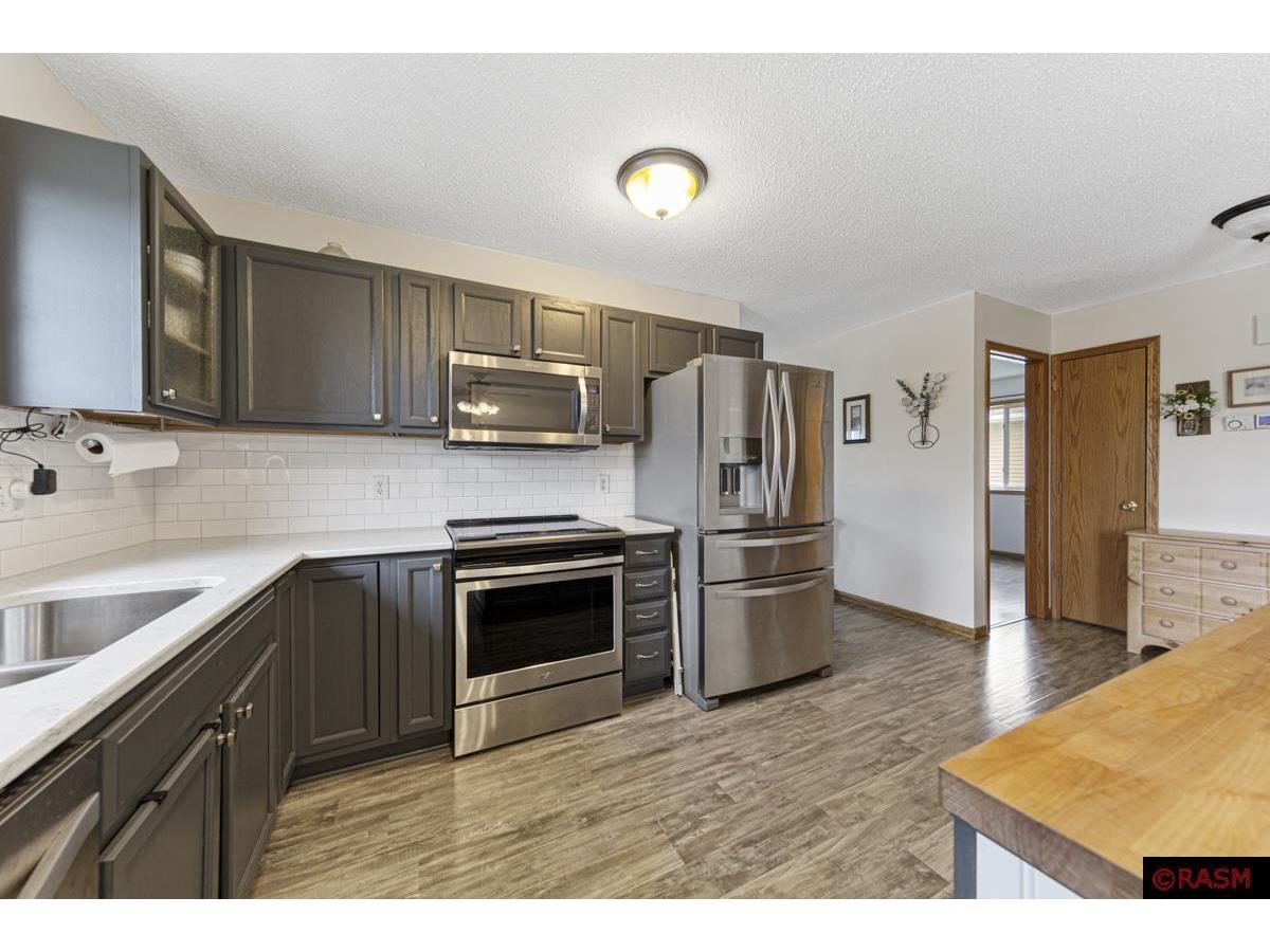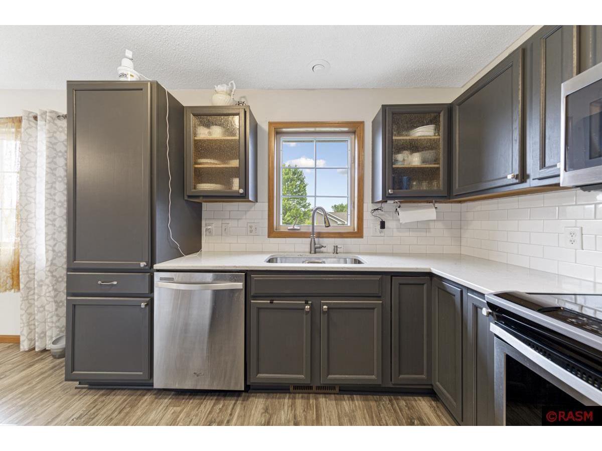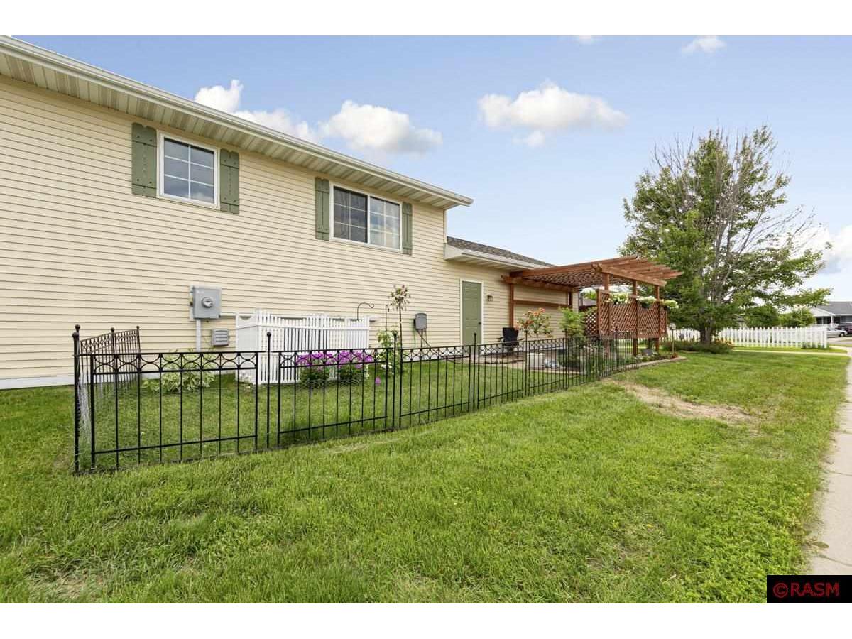 On the corner of Turpin Street, on the North end of St. Peter, you will find this well cared for, highly updated graceful home. Step into a large foyer, up to the main level spacious living room with an abundance of natural light, and grey toned flooring throughout. The Kitchen is a wonderful gathering place with a center island, white tiled backsplash and deep grey cabinets, hardstone countertops and stainless-steel appliances. The main floor has a full bathroom with newer cabinets and a farmhouse vibe. The main level also has two bedrooms. The lower level has impressive living room space lined caramel and tobacco toned flooring, and filled with more natural light and look out windows. The lower level also houses 2 additional bedrooms, a full bathroom highlighting tiled floor and black and white tones. You'll also find a large laundry room, with built-in shelving, sink and washer, dryer. Enjoy summers from your sweet outdoor patio, shaded with a pergola and surrounded by flowers and fenced. Great location, and solid home.