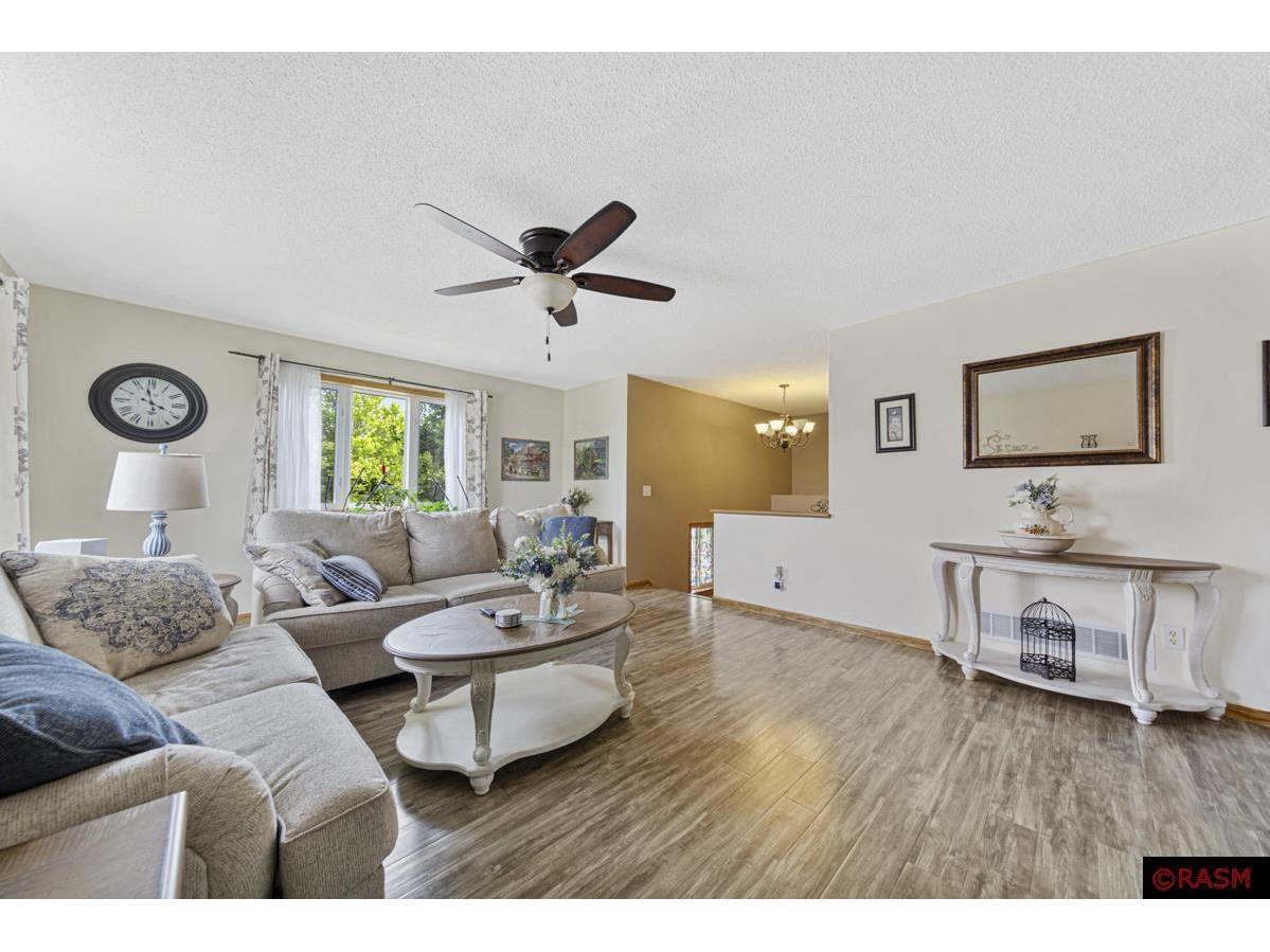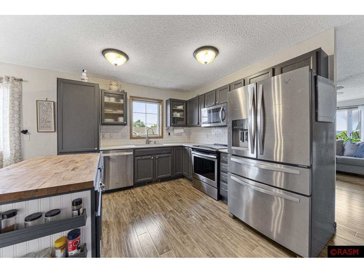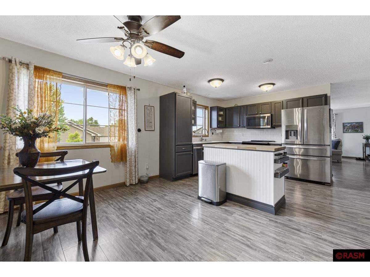 On the corner of Turpin Street, on the North end of St. Peter, you will find this well cared for, highly updated graceful home. Step into a large foyer, up to the main level spacious living room with an abundance of natural light, and grey toned flooring throughout. The Kitchen is a wonderful gathering place with a center island, white tiled backsplash and deep grey cabinets, hardstone countertops and stainless-steel appliances. The main floor has a full bathroom with newer cabinets and a farmhouse vibe. The main level also has two bedrooms. The lower level has impressive living room space lined caramel and tobacco toned flooring, and filled with more natural light and look out windows. The lower level also houses 2 additional bedrooms, a full bathroom highlighting tiled floor and black and white tones. You'll also find a large laundry room, with built-in shelving, sink and washer, dryer. Enjoy summers from your sweet outdoor patio, shaded with a pergola and surrounded by flowers and fenced. Great location, and solid home.