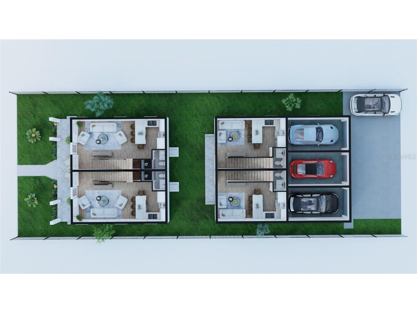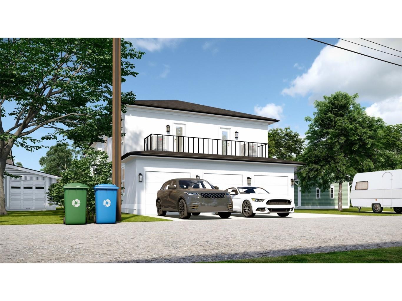 One or more photo(s) has been virtually staged. Under Construction. New Construction Fourplex in the Heart of St. Pete! Discover a rare opportunity to own a brand-new luxury fourplex in vibrant St. Petersburg, Florida. Currently under construction, this property features two sleek modern duplex buildings offering a total of four 2-bedroom, 2-bath units — ideal for both investors and owner-occupants looking to live in one unit while generating premium rental income from the other three. Each thoughtfully designed residence showcases a two-story layout with: A bright and open main floor featuring a modern kitchen, spacious living area, and a full bathroom An upper level with two well-appointed bedrooms, a second full bath, and walk-in closets in both bedrooms Contemporary luxury finishes throughout for a clean, elevated living experience The property includes a 3-car garage and 3 additional off-street parking spaces, ensuring both privacy and convenience. The two-building layout provides natural separation between units, with a shared green space in the center and a rear balcony on the back-facing building. Note: rear units have a more compact living areas to accommodate the garage footprint. Floor plans are shown in photos. Perfectly located just minutes from downtown St. Pete, the Gulf beaches, and an array of restaurants, parks, and shops, this unique offering blends long-term investment value with modern coastal lifestyle appeal.