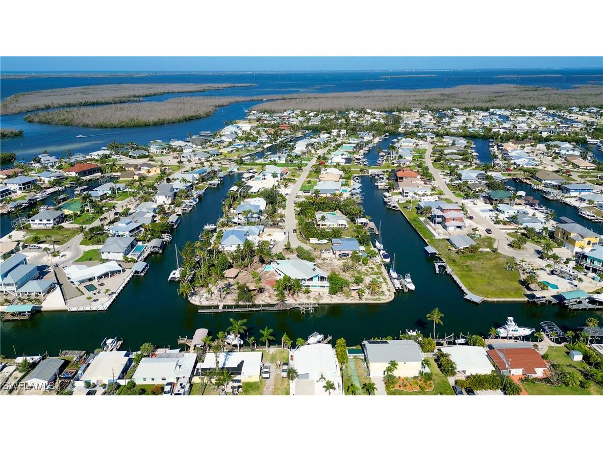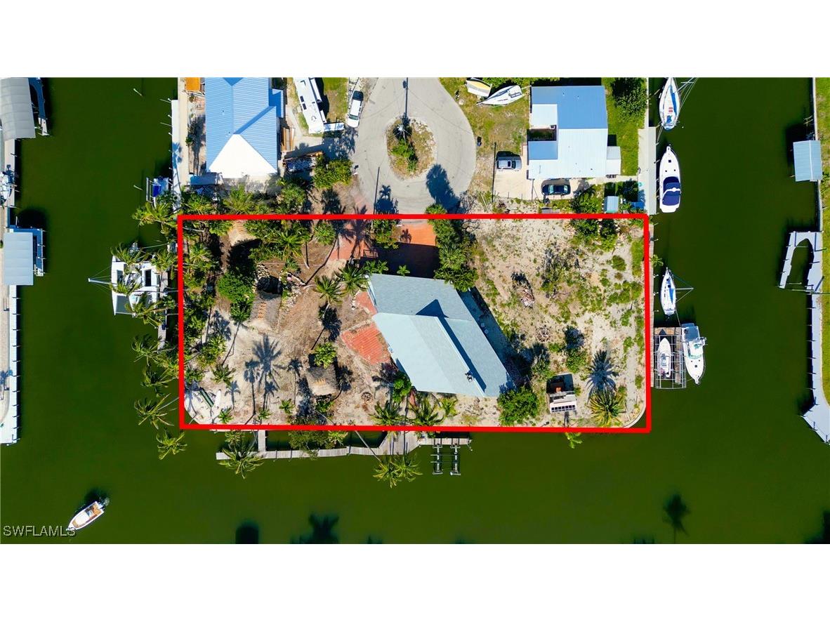Triple intersecting canals, 3-"Buildable Lots" (lots 11-12-13) .8 acre on cul-de-sac with "SUPER FAST DIRECT ACCESS CANAL TO SAN CARLOS BAY AND THE WORLD !! - 3 docks, sailboat access, boat lift. The Two story house on lot 12, has good bones a large open ground floor with fire place, 2 car garage, bathroom. The second floor (no flooding or hurricane damage) has large open space with fireplace, large wrap-around porch - needs total restoration.. The property has 3 Chickee Huts for party and relaxing, many palms and plants. If you are looking for a waterfront compound for a family & friends or quiet tropical solitude, come to the very south end of Pine Island and walk around this superb property Today!!! SEE THIS GEM OF A PROPERTY ON EMERALD ST.