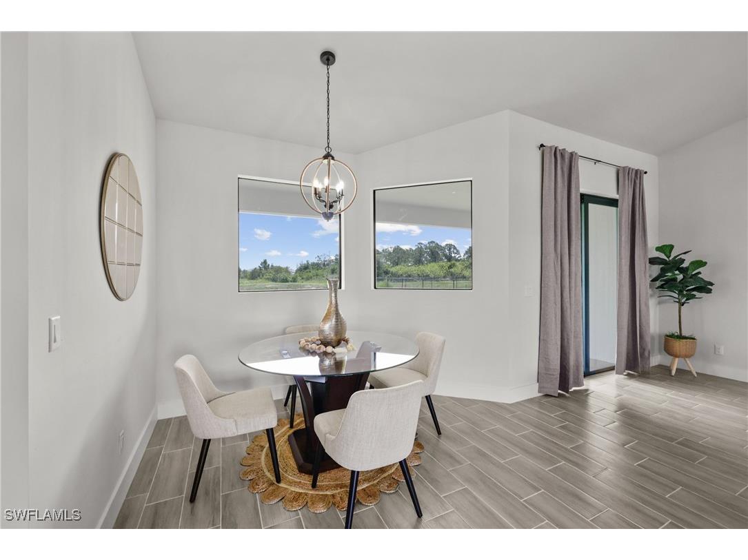 NEW CONSTRUCTION! One-of-a-Kind Custom Home — Built in 2024/2025 Why settle for ordinary when you can own extraordinary? This brand-new, custom-designed showpiece is loaded with high-end finishes and modern upgrades, all thoughtfully crafted to create a home that’s as functional as it is breathtaking. Located on a peaceful canal lot in the heart of Lehigh Acres, this 4-bedroom, 2-bathroom beauty with an oversized 2-car garage is a must-see! Step inside to soaring cathedral ceilings, dramatic 8-foot doors, and sleek tile flooring throughout, giving this home a grand, open-concept feel. The kitchen is a chef’s dream, featuring: * Stunning double-decker cabinets * A massive 12-foot granite island * Top-of-the-line appliances included * Custom 1-of-a-kind range hood * Pot filler over the stove * Walk-in pantry for extra storage * Beverage bar ideal for entertaining The cozy living area is centered around an elegant electric fireplace, offering the perfect blend of comfort and style. The primary suite is truly a private retreat, featuring his-and-her custom walk-in closets and a spa-like bathroom with: * A walk-through shower * Stand-alone soaking tub set against a floor-to-ceiling accent wall * Extra-large dual-sink vanity with abundant storage The second bathroom also offers dual sinks and a convenient tub-shower combo. A well-appointed laundry room includes a sink and ample cabinetry, making organization effortless. Outside, enjoy the serene canal views from your backyard with room to add a pool or create your dream outdoor space. The lot is fully cleared, offering privacy and potential. Additional Upgrades Include:?? Hurricane impact windows and doors?? Paver driveway and walkways?? Fully tiled throughout?? Quality finishes in every corner Don’t miss your chance to own this one-of-a-kind custom build. Move-in ready and truly unmatched in quality—schedule your private showing today!