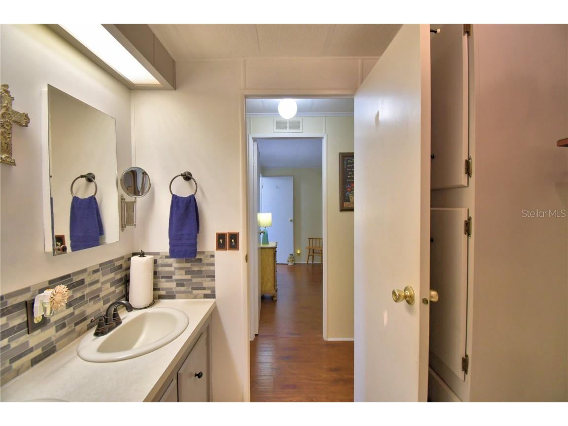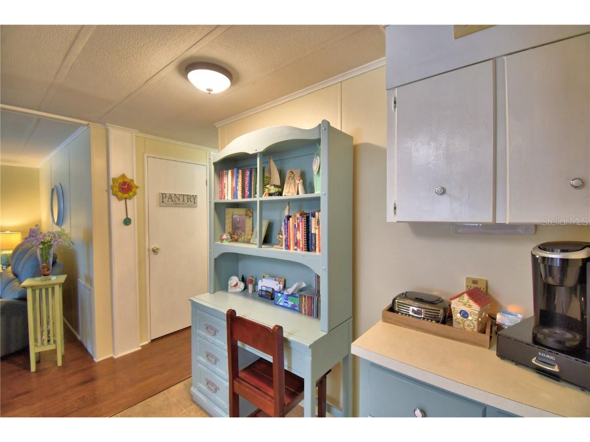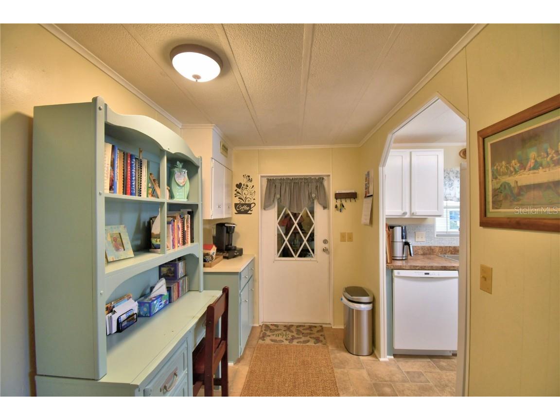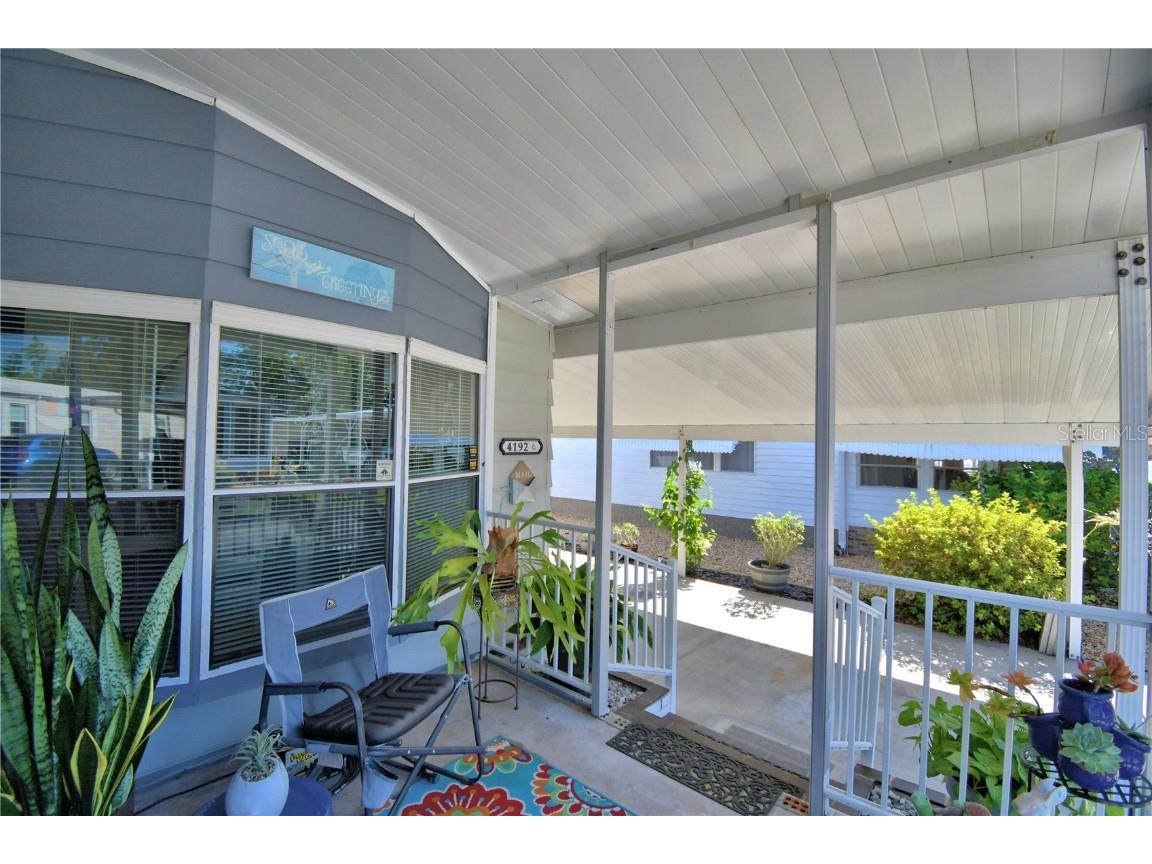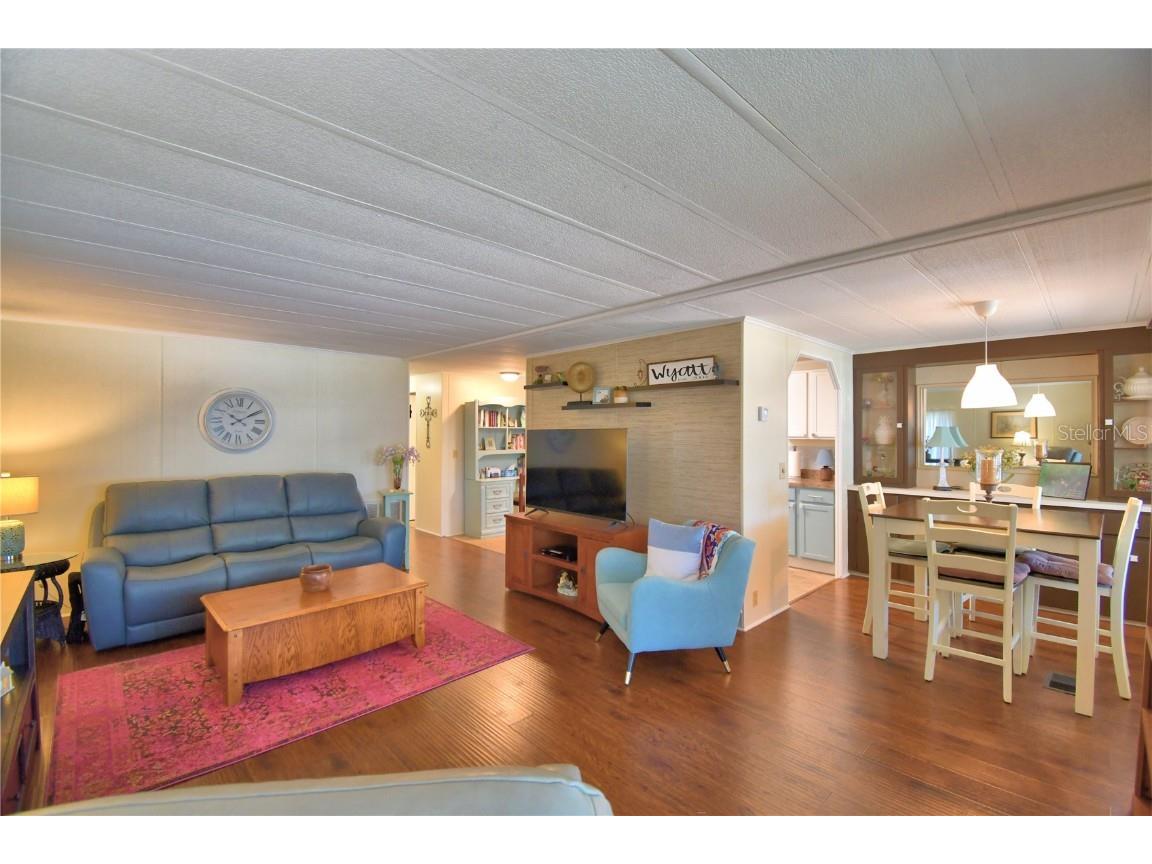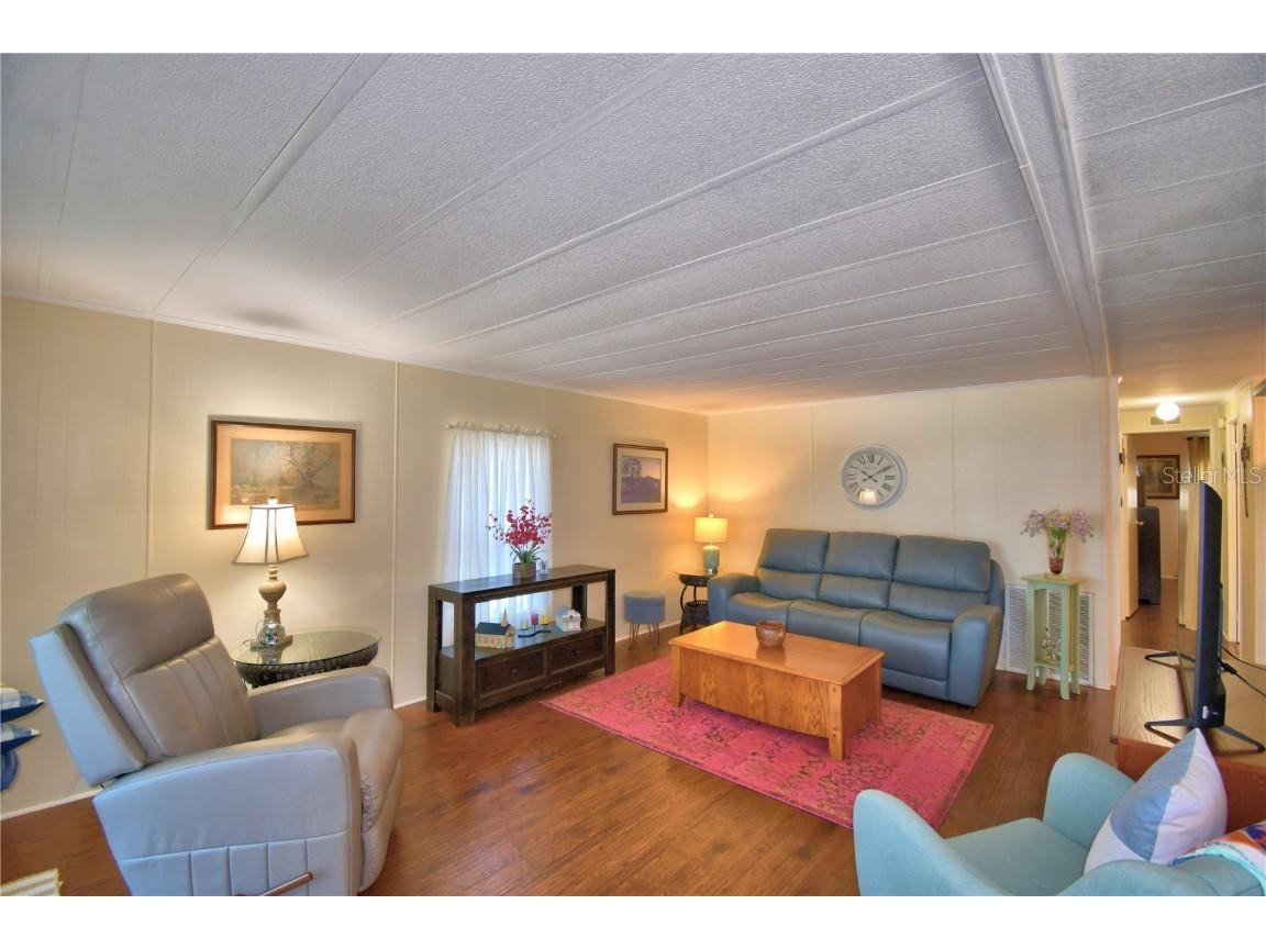 This lovely home is a MUST SEE in Oakwood Estates 55+ community! This well-maintained and updated 2 BR/ 2 BA home has a warm and cozy feeling from the time you enter the home. Inside features a large great room, kitchen with separate dining room, office space, and two nice-sized bedrooms. No carpeting throughout for easy maintenance. The huge storage area has been extended by the current owners, providing you with plenty of room for all of your extras plus a generous laundry area as well. All appliances are included with the sale. The air-conditioning unit was replaced in 2023. Most windows were also replaced in 2023. Plumbing was updated to CPVC in 2017. This home is truly move-in ready! Outside you can relax on your screened-in patio or the open patio area. The community offers many activities and ammenities to keep you as busy as you would like to be. This home is located in the NO DOG section, but indoor pets such as birds, cats and fish are allowed. Don't miss out on scheduling your private tour today! You will not be disappointed.