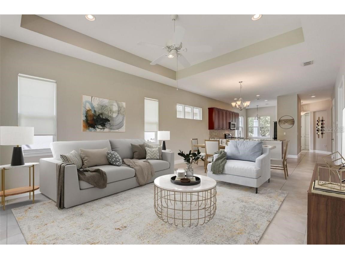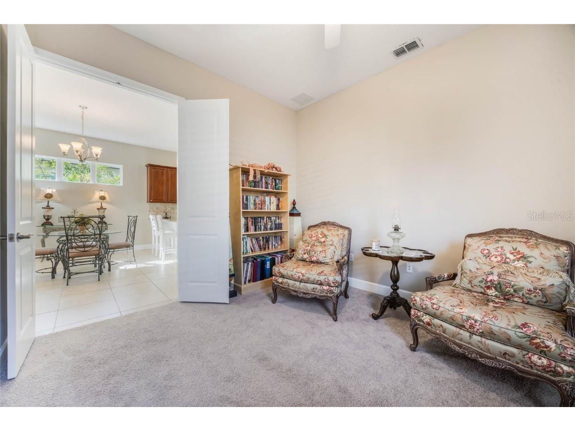 One or more photo(s) has been virtually staged. PRICE DROP-Stunning Home in the Highly Desirable Victoria Gardens 55+ Community! Welcome to this beautifully designed 2-bedroom, 2-bathroom plus a Flex Room that could be used as a 3rd bedroom, offering the perfect open layout. The light and bright interior features tile floors, new carpet in the bedrooms, and a spacious kitchen with granite countertops, 42” cabinetry with crown molding, a large breakfast bar, stainless steel appliances, and a cozy breakfast nook. The primary suite stands out with a tray ceiling, a private en suite bath and a large glass-enclosed walk-in shower. Step outside to enjoy peaceful mornings and evenings with a conservation area view and no rear neighbors, all within a short distance to the Victoria Gardens clubhouse. The HOA covers high-speed internet, HD cable with DVR boxes, lawn and shrub care with reclaimed water, exterior pest control, and gated community access. Amenities include a private clubhouse with dining and bar, fitness center, lap pool, game rooms, tennis and pickleball courts, library and various clubs and events. The location is unbeatable just minutes from I-4 for easy access to Orlando, Daytona Beach and New Smyrna Beach only 30 minutes and nearby airports. It’s also close to downtown DeLand, voted Best Main Street,. Publix, ALDI, Starbucks, Chick-fil-A, and AdventHealth Medical Park facilities all within a short distance. Check out the Amenties and what they have to offer at https://victoriagardensdeland.sites.townsq.io/5
