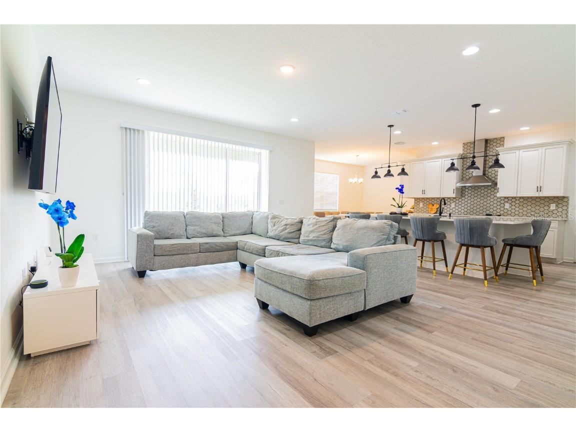 Welcome to 4371 Renly Lane! This spacious 6-bedroom, 4.5-bathroom home offers the perfect blend of comfort, function, and privacy. It features a large office that can easily be converted into a seventh bedroom, a generous loft with a wet bar (including a sink, cabinetry, and space for a mini fridge), and an oversized hallway closet for extra storage. The gourmet kitchen boasts a large island, ideal for entertaining and everyday living. Situated on a generous lot with no rear neighbors, the home backs up to a dry pond, providing open views and added tranquility. The expansive backyard offers great potential for building a private pool — and it also showcases stunning sunset views for you to enjoy every evening. Located in a well-maintained community with a swimming pool and internet included in the HOA fee. Don’t miss this opportunity to own a beautifully located and versatile home in Clermont!