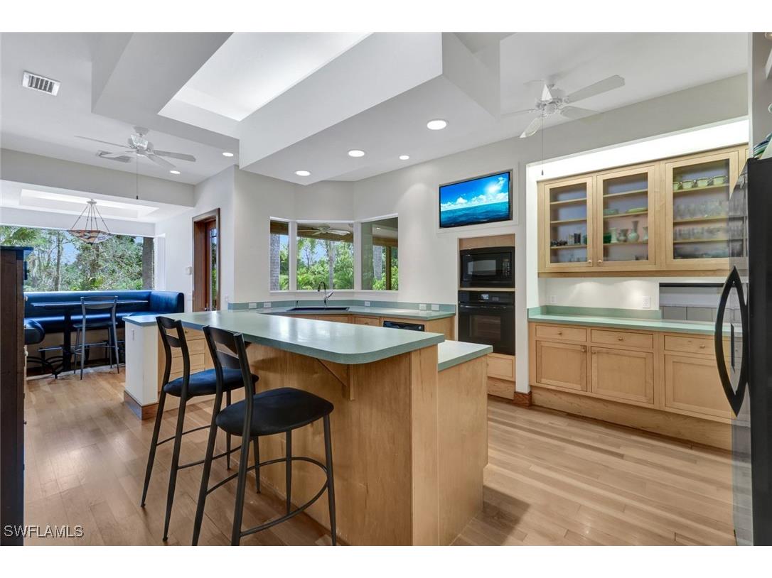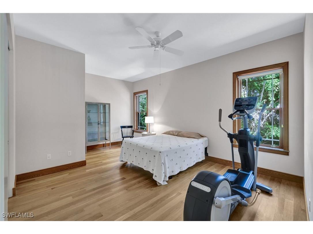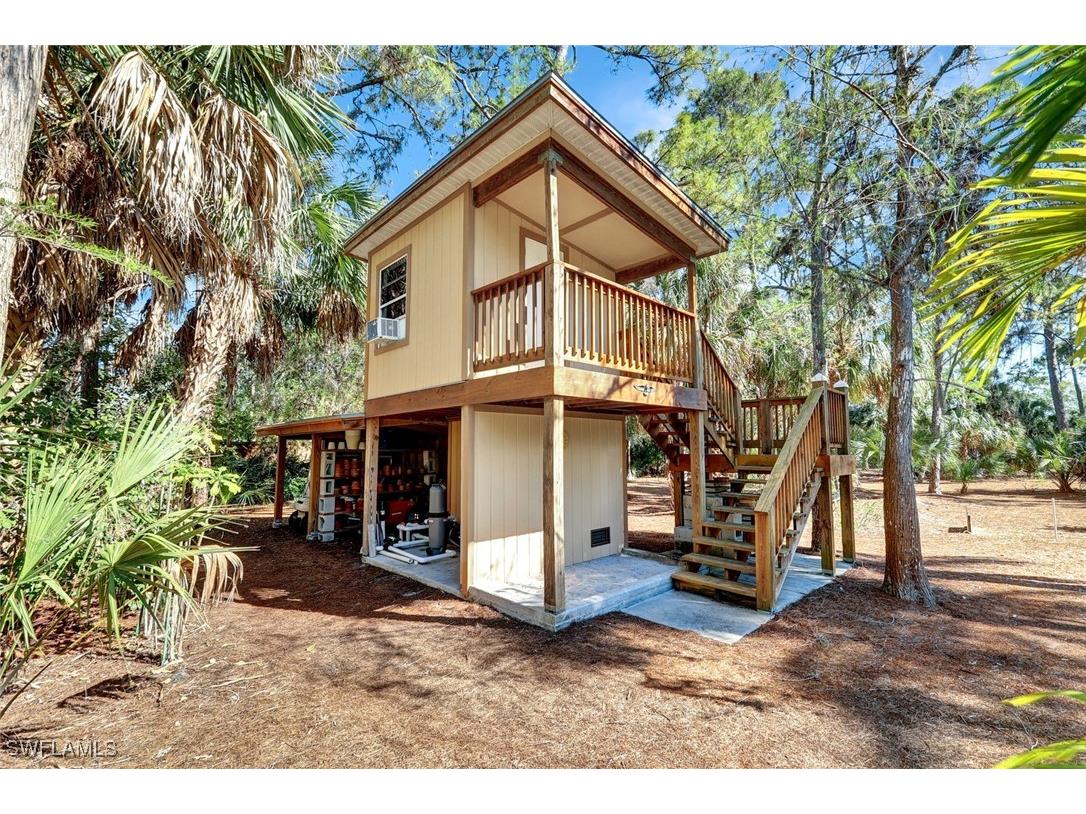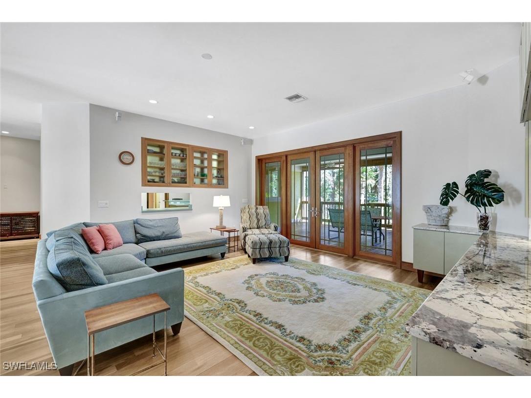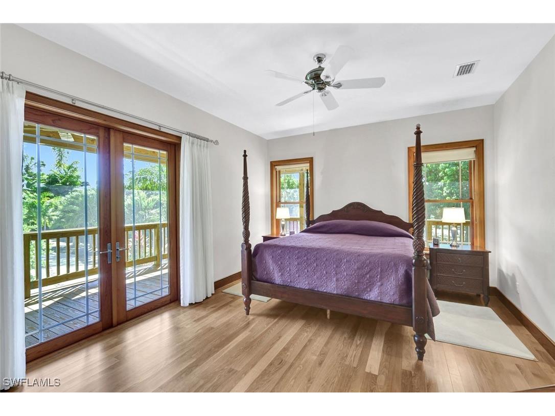 Discover a masterfully crafted Florida Vernacular estate in the heart of Oakes Estates, Naples, FL, where expert craftsmanship meets timeless design. This stunning property offers a main house, guest house, and expansive outdoor spaces, all designed with quality and longevity in mind. The main home features 3 bedrooms plus a den. Soaring 10-ft ceilings and 8-ft doors throughout create an open and airy feel, while prairie-style windows enhance its architectural charm. The interior showcases custom, locally crafted solid rock maple cabinetry and unstained white oak flooring, adding warmth and character to the home. The primary suite boasts a one-piece marble shower and a custom walk-in closet. Functionality meets convenience with a whole-house reverse osmosis system, a new exterior and interior paint job, and masonry construction. The home is designed with no interior load-bearing walls, allowing for a flexible floor plan for potential future updates. Extra-deep garages provide ample storage, and the property includes an air-conditioned shed. Additional features include a central vacuum system with a new motor, copper plumbing, a newer water heater, and a 5-ton AC. The guest house, built in 2006, offers 1,100 sq. ft. under air with 2 bedrooms and 1.5 baths. It features polished concrete floors, impact-resistant PGT windows, and high-end finishes, including granite countertops and luxury German cabinetry. Stainless steel appliances complete the modern kitchen, making it a perfect retreat for guests or extended family. Outdoor living is a dream with a 3/4 wraparound porch that exudes Florida Vernacular charm. The property includes a gunite pool with a new filter recently installed. A tranquil canal in the backyard provides a perfect spot for fishing, with large-mouth bass, peacock bass, snook, and gar frequently found in the waters. Situated in Zone X, flood insurance is not required. The home sits 50 inches above the crown of the road, ensuring an elevated and secure foundation. This estate seamlessly blends luxury, durability, and thoughtful design, creating a home that is as functional as it is beautiful. Enjoy the serene, private setting of Oakes Estates while being just minutes from Naples' world-class dining, shopping, and beaches. Schedule a private showing today and experience this one-of-a-kind property for yourself!