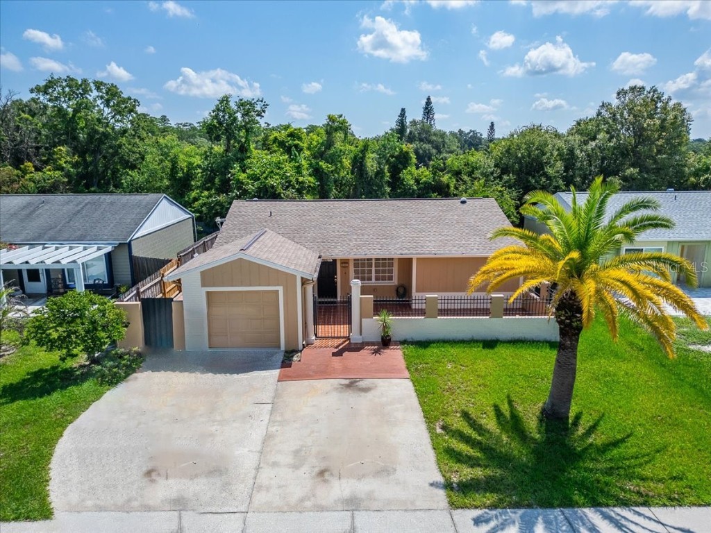 One or more photo(s) has been virtually staged. Welcome to this beautifully updated 4-bedroom, 3-bath home in the heart of Carrollwood, offering a rare combination of lake access, no HOA, and move-in-ready upgrades. Situated on a spacious fenced lot, this home delivers comfort, flexibility, and Florida living at its best. An oversized private front courtyard creates a warm first impression—perfect for relaxing, entertaining, or a garden oasis. Inside, enjoy a bright, open floor plan filled with natural light. The updated kitchen features granite countertops, stainless steel appliances, and a skylight, seamlessly connecting to the living and dining areas. The sun-filled primary suite offers a walk-in closet and ensuite bath with a tub/shower combo and skylight for a spa-like feel. Two additional bedrooms share a full bath, while the fourth bedroom with private ensuite provides excellent flexibility as an in-law suite, home office, or guest space. Outdoor living shines with a screened lanai and extended patio, ideal for entertaining or peaceful evenings. Additional highlights include indoor laundry, powered storage shed, newer washer and dryer, and an extra refrigerator. Enjoy NO HOA or CDD, plus access to nearby community amenities including playgrounds, courts, and open green spaces. Conveniently located near the Veterans Expressway, top-rated schools, shopping, dining, and all that Carrollwood has to offer. Major updates: Roof (2024) AC (2025) Recent price reduction — sellers are motivated and want this SOLD before the New Year. Schedule your showing today and bring your offer.