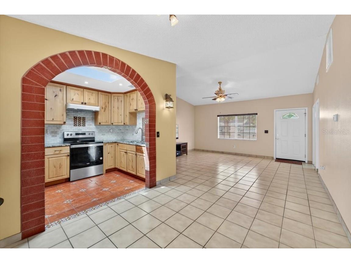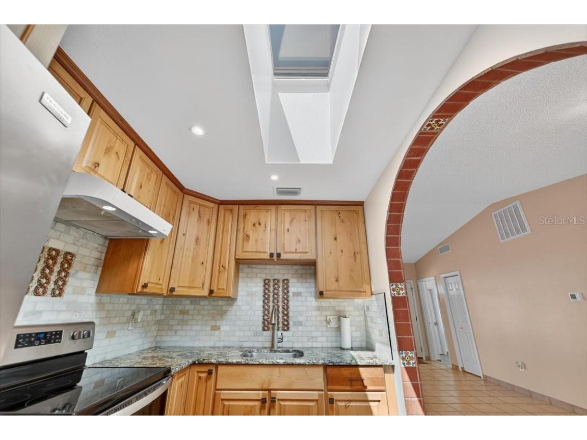 Additional Interior Features: Ceiling Fan(s), Walk-In Closet(s), Skylights, Built-in Features, Open Floorplan, Solid Surface Counters, Stone Counters, Wood Cabinets, Living/Dining Room, Main Level Primary, High Ceilings