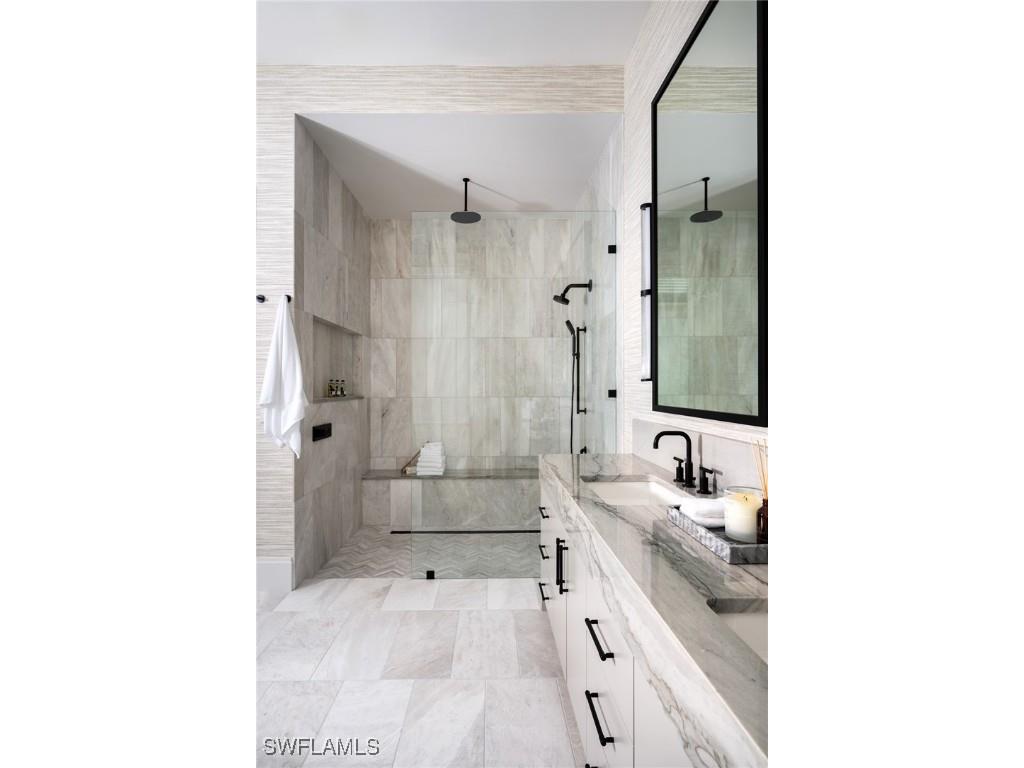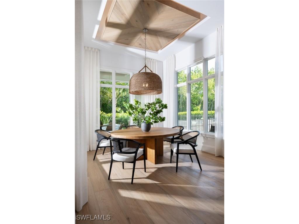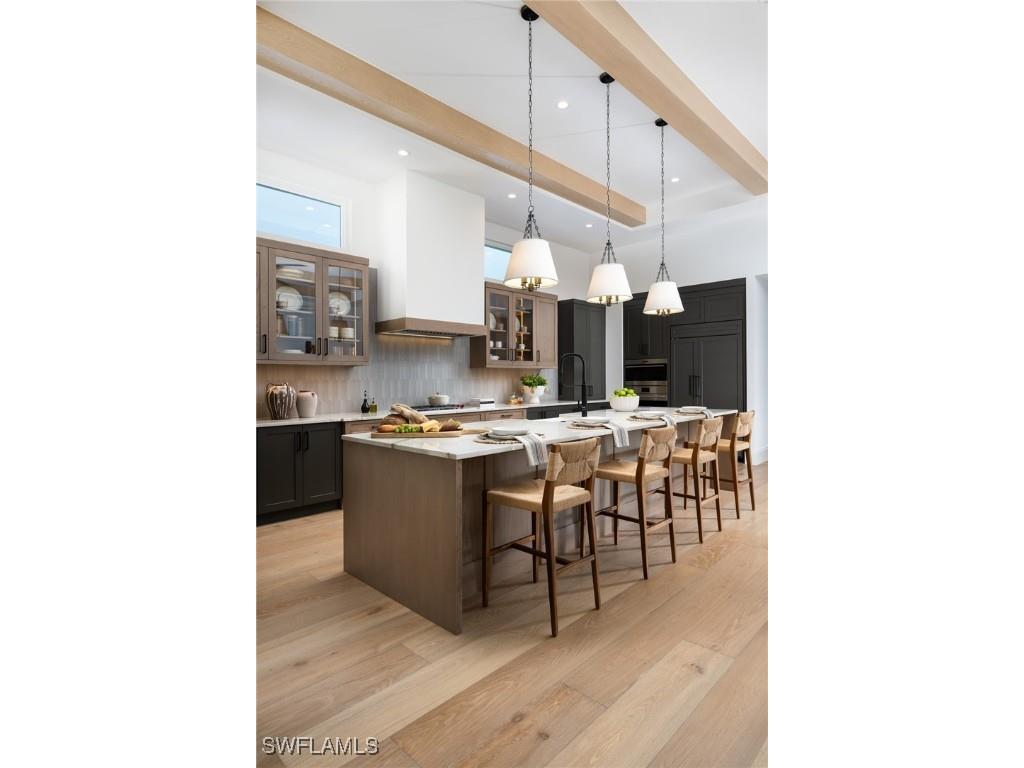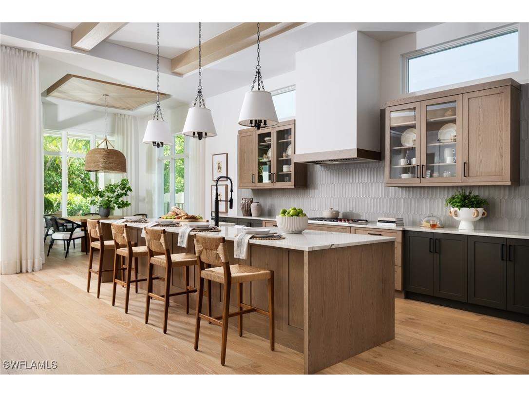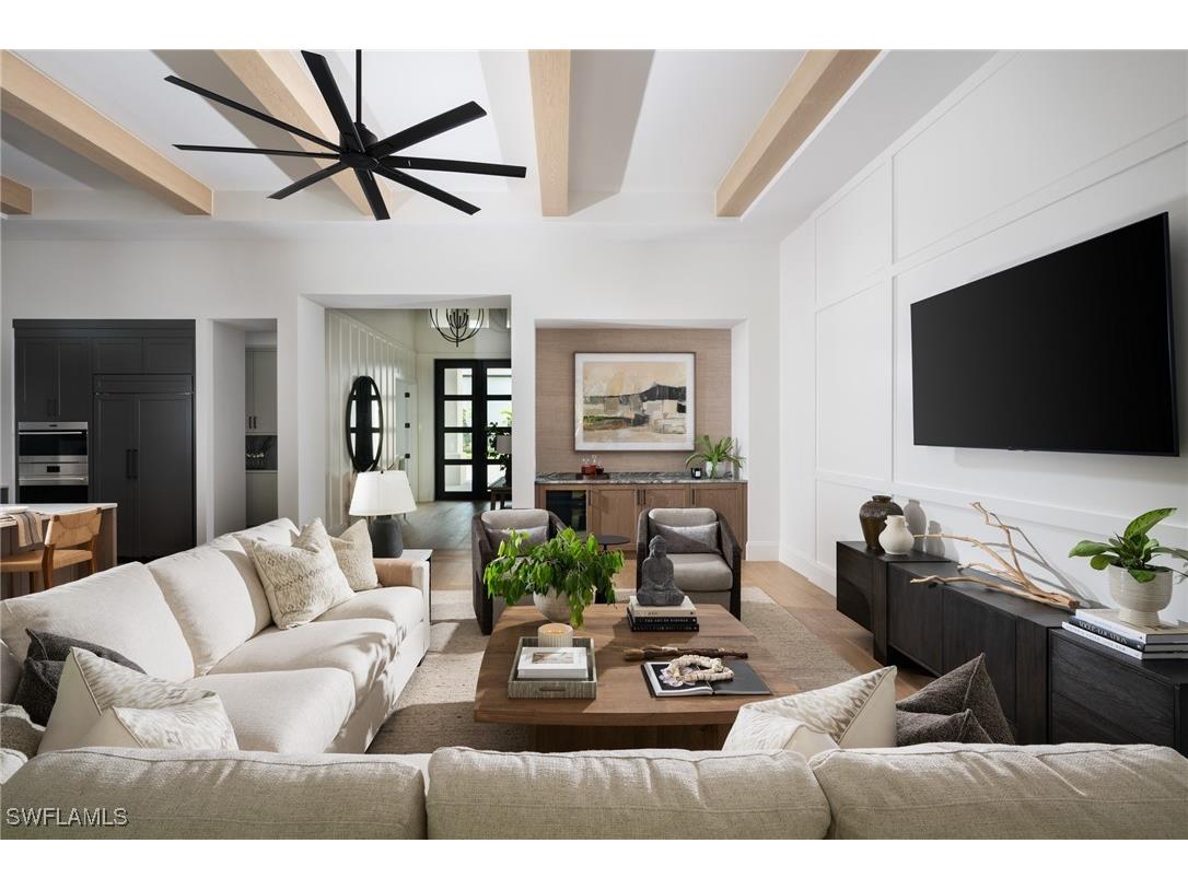 DESIGNER FURNISHED AND MOVE-IN READY HOME AVAILABLE NOW! Seagate Development Group and Theory Design present the professionally designed and furnished Laguna Model Home in Palisades, one of Seagate’s newest, gated communities in the heart of Naples. This custom home is a collaboration between Seagate Development Group and Theory Design with Architecture by JMDG Architecture, and custom landscape & hardscape design by Outside Productions. Enjoy a coastal cottage design with off white, neutral and slate tones, warm European White Oak floors, wood beam ceilings and decorative wall moldings. This custom home features 3 bedrooms, study, 3 full and 2 half baths, and an oversized 3-car garage. The outdoor living area features electric roll down screens, tongue and groove stained ceiling, outdoor kitchen, stone fireplace, lounge area, pool bath, custom pool with spa and lush landscaping. The home has an open floor plan with trimmed tray ceilings throughout. The gourmet kitchen includes custom cabinetry, with glass upper cabinets with lighting, tile backsplash, custom hood, under cabinet lighting, island with natural stone countertop, paneled Sub Zero/Wolf appliance package, windows for natural lighting, and walk-in pantry with cabinetry, refrigerator, and ice maker. The great room includes stained wood beam ceilings, decorative wall molding and a bar with an undercounter beverage refrigerator. The master suite features a sitting area with sliding glass doors leading to the covered lanai. The master bathroom features honed marble floors and comes equipped with Kohler plumbing fixtures including 2 private water closets, soaking tub, spacious shower with 3 showerheads and a linen closet. Additional luxury features include 9.45” European White Oak wood floor throughout, custom built-in closets, 1 ¾” solid interior doors, Emtek door hardware, linear HVAC diffusers in common areas, level 5 drywall, double pane Andersen impact windows & doors, Control4 home automation system, sound system, spray foam insulation, custom iron front door, natural gas, lush landscaping, and interior designer selected custom light fixtures and furnishings. Palisades is an enclave of 25 custom homes situated in a premier Naples location with abundant amenities. Palisades is only minutes away from Mercato, Waterside Shops, 2 Ritz-Carltons, and other exceptional shopping, dining, and beachfront destinations. Seagate’s portfolio of companies specialize in custom homes, renovations, interior design, estate management, and land development. Together, bringing exceptional concierge levels of service to everything we do. SALES CENTER OPEN DAILY.