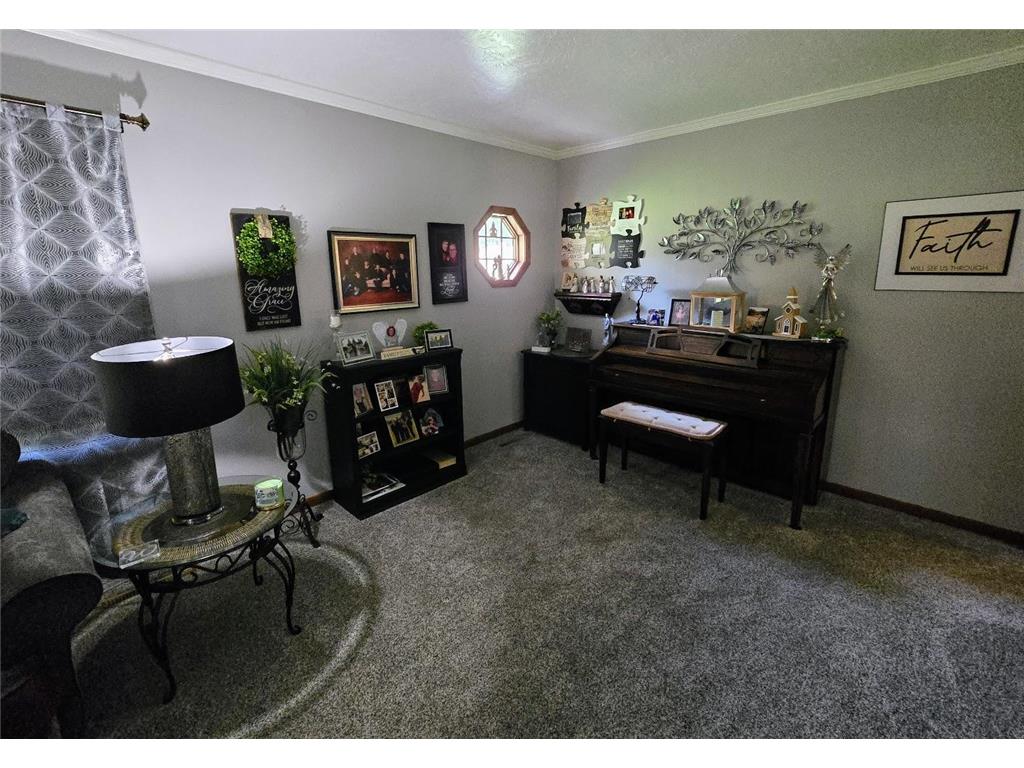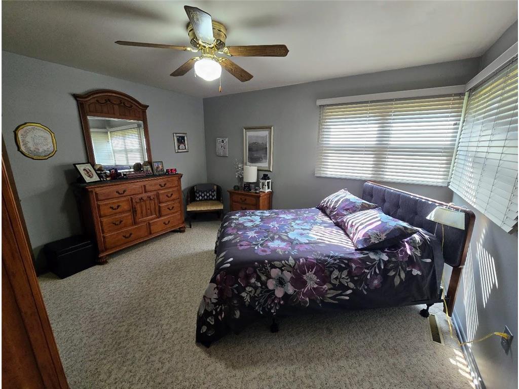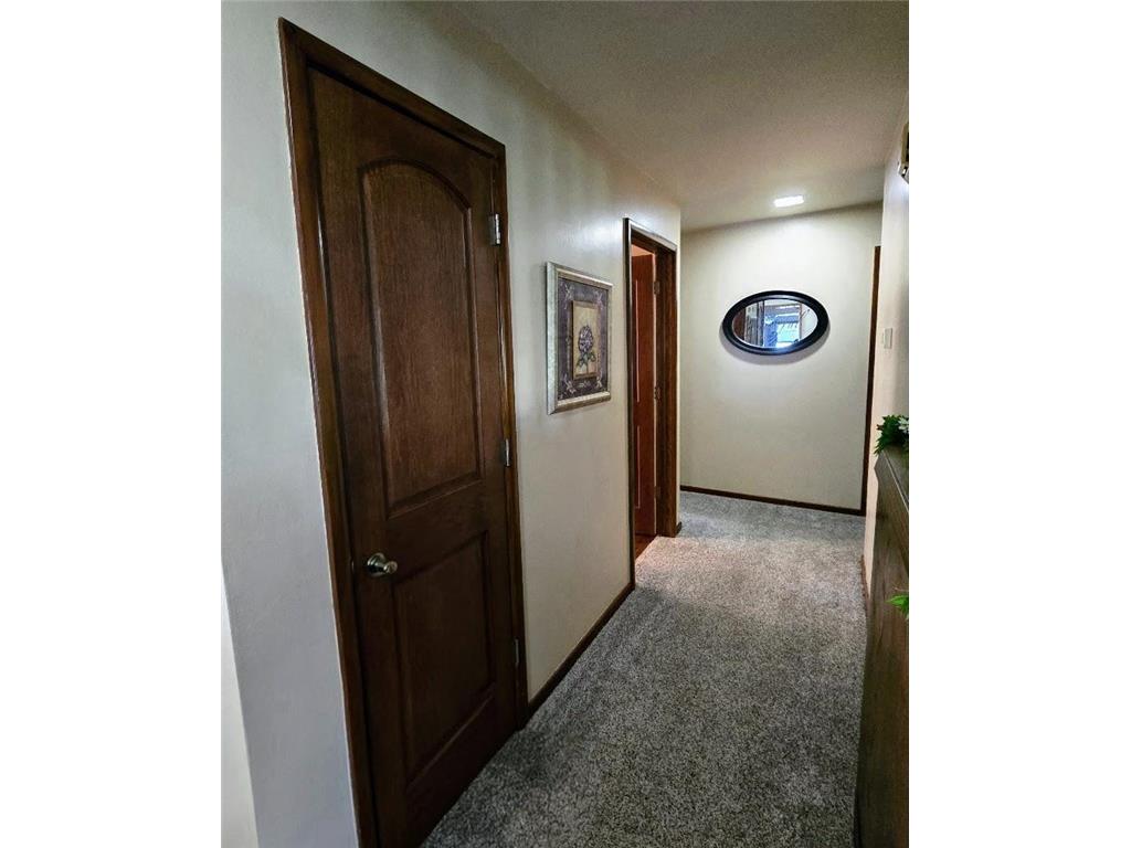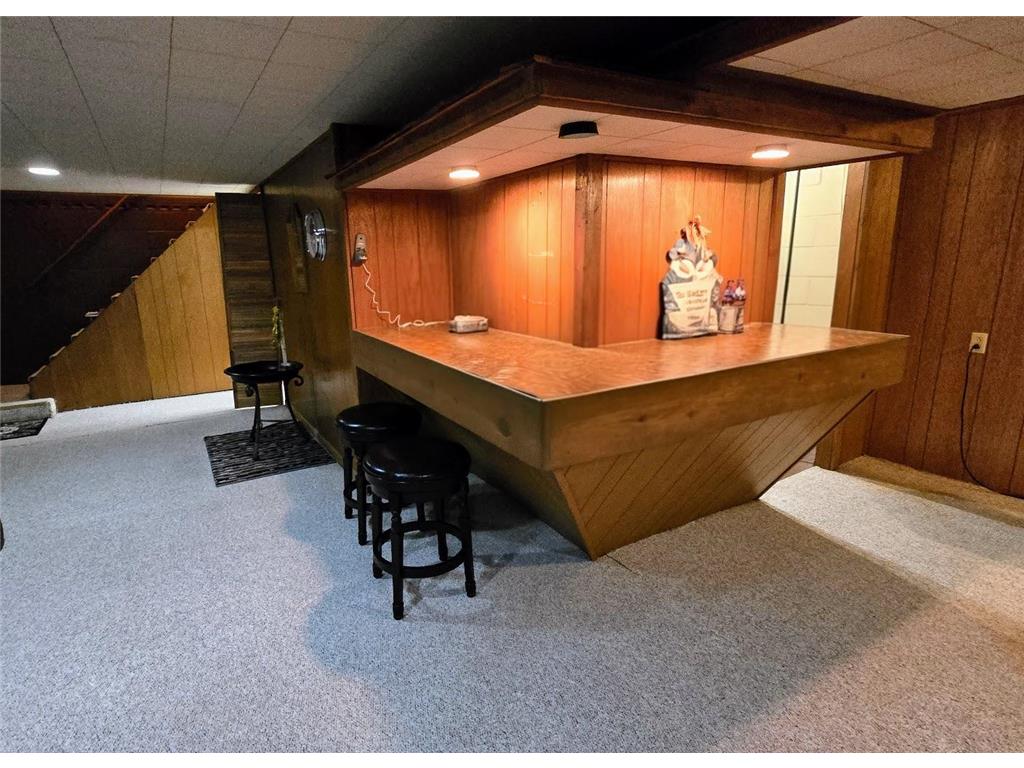 Well-maintained ranch-style home on a beautifully landscaped corner lot! This property features a spacious 18' x 22' composite deck on the southeast side—perfect for relaxing or entertaining. The main floor offers three bedrooms, an updated full bath with tub/shower, and a large carpeted living room with newer windows. The kitchen includes updated countertops, a stylish backsplash, and a dining bar that opens to a bright and spacious dining room with laminate flooring, newer windows, and direct access to the deck.The finished basement offers even more living space with a carpeted family room and built-in bar, ¾ bath, utility/laundry area (washer & dryer included), workshop/storage room, and two bonus rooms with closets. Structural steel beams were professionally installed by Complete Basement Systems along the north and west walls, with a transferable warranty for peace of mind.Additional features include vinyl siding, detached double garage, roof approx. 12 years old, two sump pumps, and a fantastic location near the hospital, park, and grocery store.