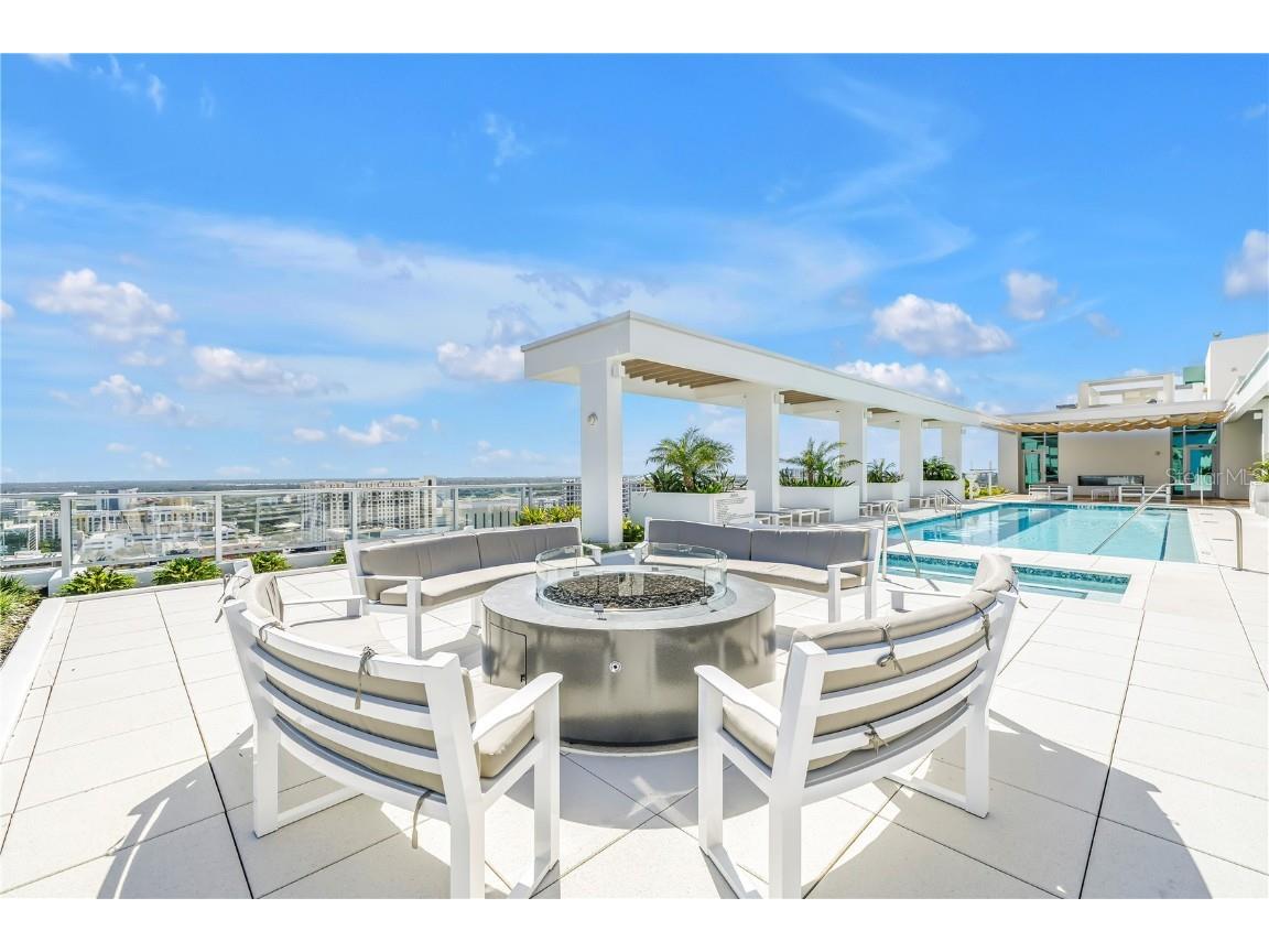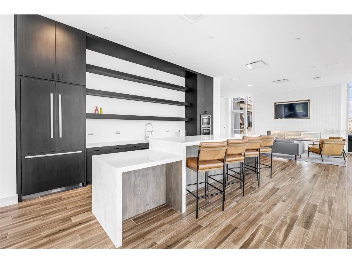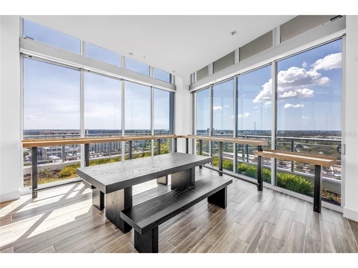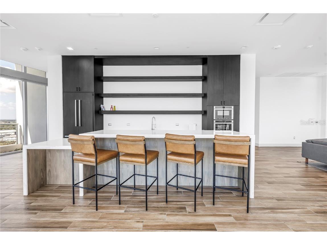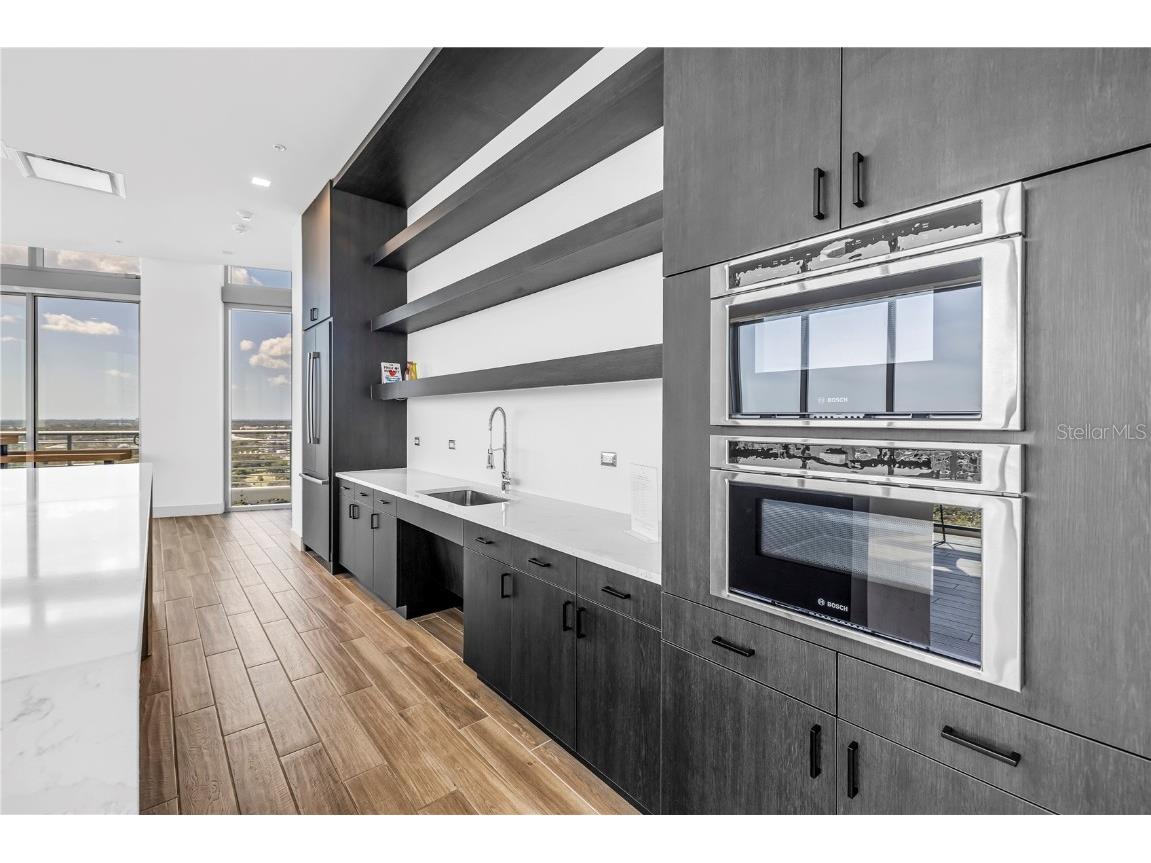 REFLECTION St. Pete introduces the Lapis residence—a stunning 16th-floor premier corner home that captures the essence of elevated downtown living. Spanning nearly 2,300 square feet, this 2-bedroom plus den, 2-bath residence showcases expansive floor-to-ceiling glass and a private terrace with sweeping, protected views of the city skyline, Mirror Lake, and Tampa Bay. With historic properties surrounding the building, the eastern lake views will remain unobstructed for years to come. Inside, the Lapis features 10-foot ceilings, upgraded porcelain tile floors, and a modern kitchen with quartz countertops, panel-ready Bosch appliances, and a Thermador wine fridge built into the kitchen island. A window over the sink frames tranquil lake and skyline views, while the open layout creates a seamless flow between living, dining, and outdoor spaces. The primary suite includes a European-style wet room, upgraded fixtures, and both reach-in and walk-in closets. The second bedroom is generously sized, and the den provides flexible space for a home office or guest room. Two assigned parking spaces are included. Residents enjoy exclusive access to a 12,000-sq-ft rooftop oasis with a heated saltwater pool and spa, glass-walled fitness center, social club, fire pit lounge, and outdoor kitchen—all set against panoramic city and bay views. Designed for both luxury and longevity, REFLECTION features REME Halo air filtration, a water softening system, and touchless entry. Its resilience through recent hurricanes showcases the building’s superior construction and lasting quality. Perfectly located just steps from Central Avenue’s dining, shopping, and arts scene, the Lapis residence offers the ultimate blend of sophistication, comfort, and protected panoramic views in the heart of downtown St. Petersburg.