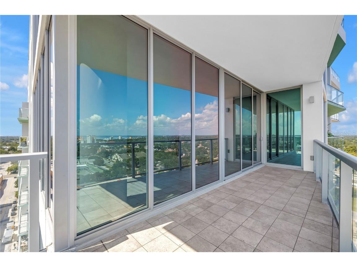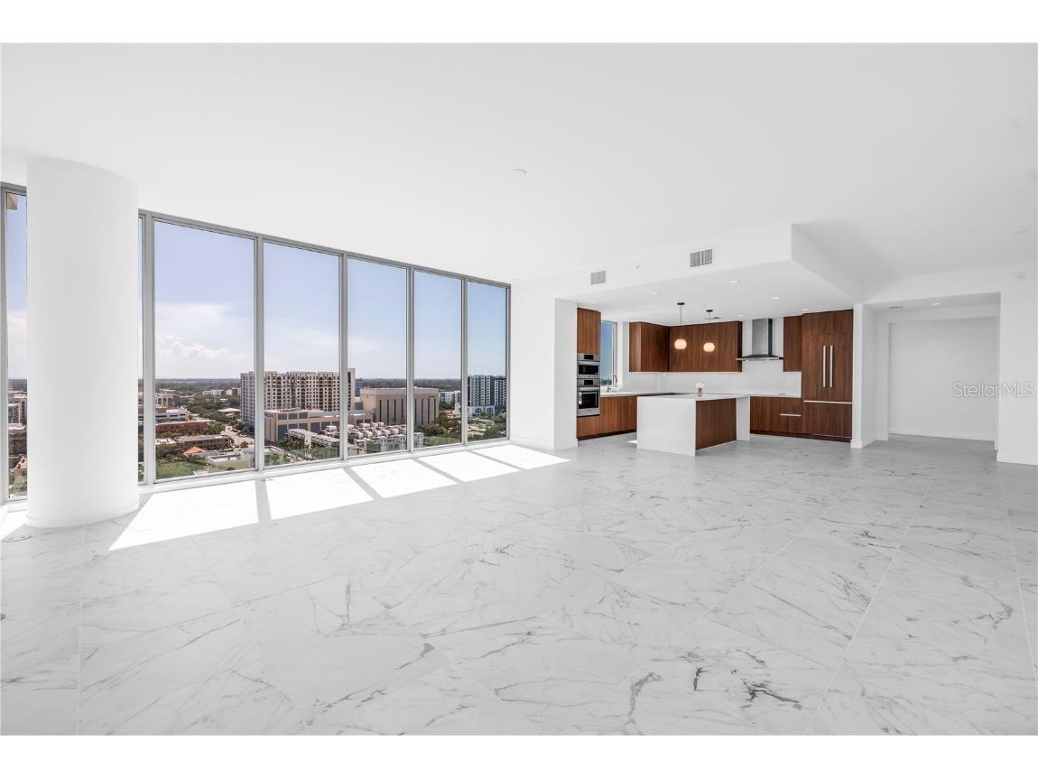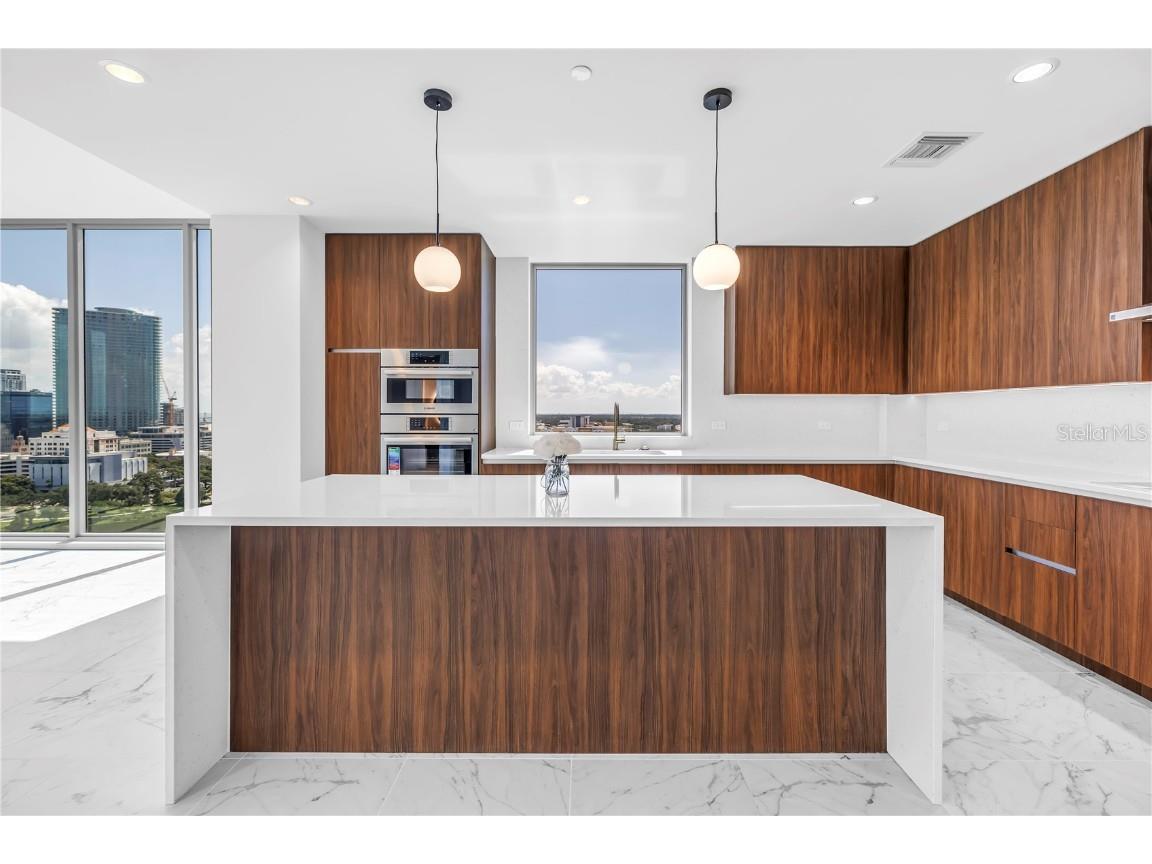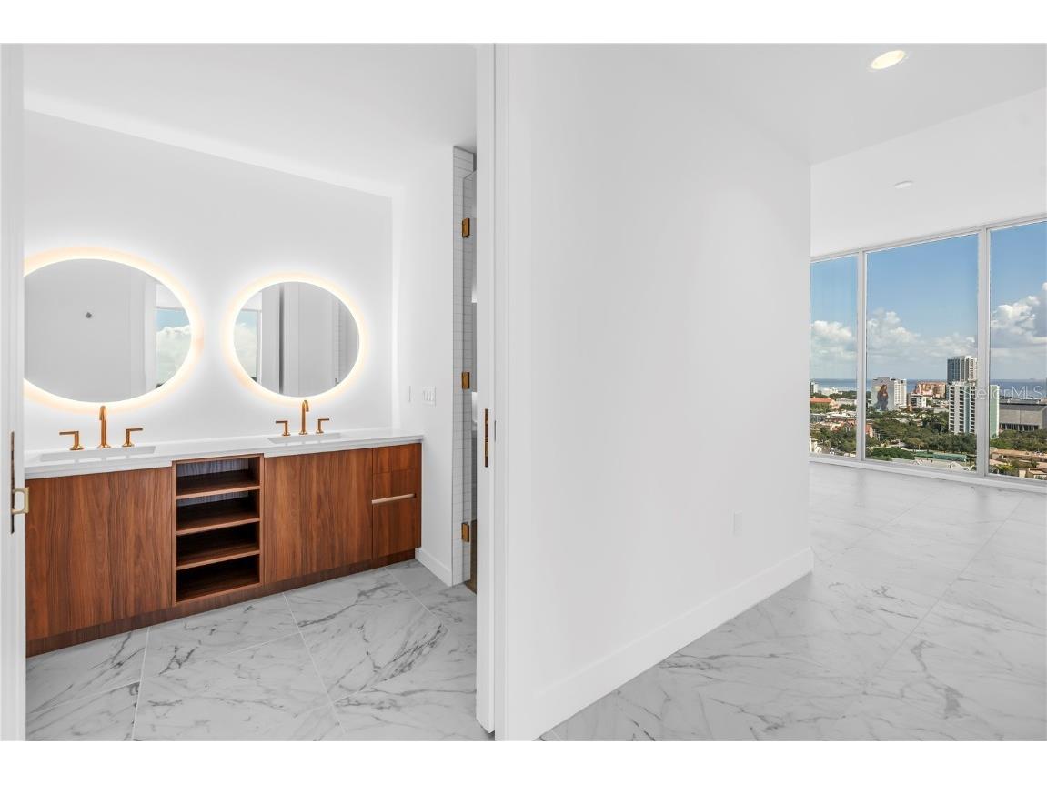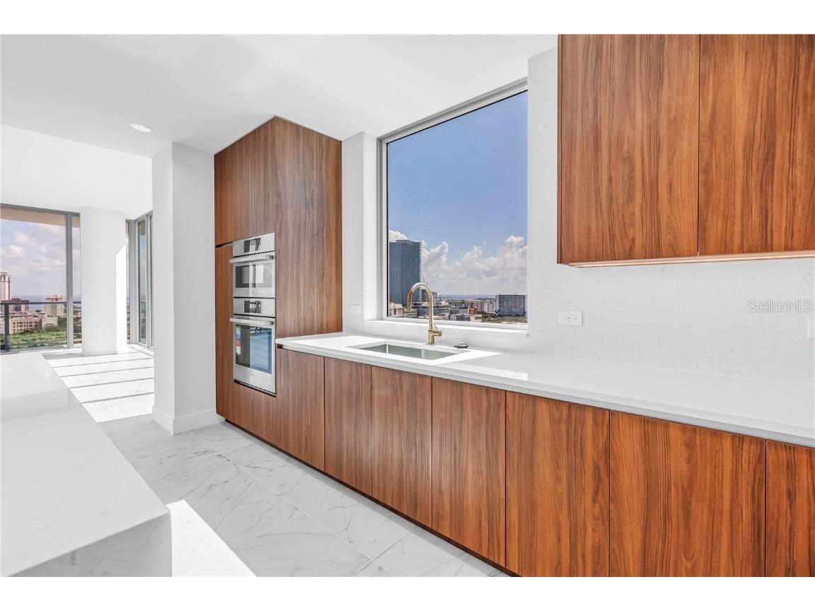 REFLECTION St. Pete introduces the Lapis residence—a stunning 16th-floor premier corner home that captures the essence of elevated downtown living. Spanning nearly 2,300 square feet, this 2-bedroom plus den, 2-bath residence showcases expansive floor-to-ceiling glass and a private terrace with sweeping, protected views of the city skyline, Mirror Lake, and Tampa Bay. With historic properties surrounding the building, the eastern lake views will remain unobstructed for years to come. Inside, the Lapis features 10-foot ceilings, upgraded porcelain tile floors, and a modern kitchen with quartz countertops, panel-ready Bosch appliances, and a Thermador wine fridge built into the kitchen island. A window over the sink frames tranquil lake and skyline views, while the open layout creates a seamless flow between living, dining, and outdoor spaces. The primary suite includes a European-style wet room, upgraded fixtures, and both reach-in and walk-in closets. The second bedroom is generously sized, and the den provides flexible space for a home office or guest room. Two assigned parking spaces are included. Residents enjoy exclusive access to a 12,000-sq-ft rooftop oasis with a heated saltwater pool and spa, glass-walled fitness center, social club, fire pit lounge, and outdoor kitchen—all set against panoramic city and bay views. Designed for both luxury and longevity, REFLECTION features REME Halo air filtration, a water softening system, and touchless entry. Its resilience through recent hurricanes showcases the building’s superior construction and lasting quality. Perfectly located just steps from Central Avenue’s dining, shopping, and arts scene, the Lapis residence offers the ultimate blend of sophistication, comfort, and protected panoramic views in the heart of downtown St. Petersburg.
