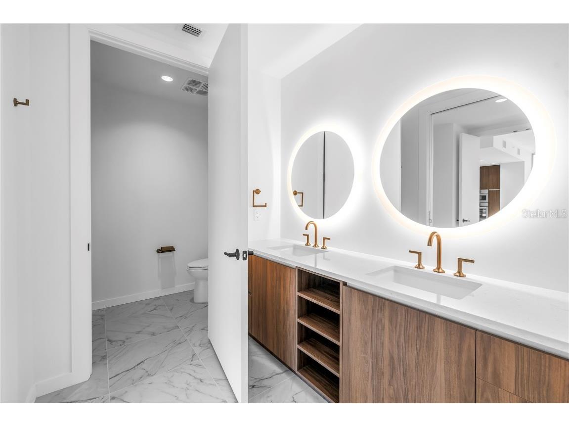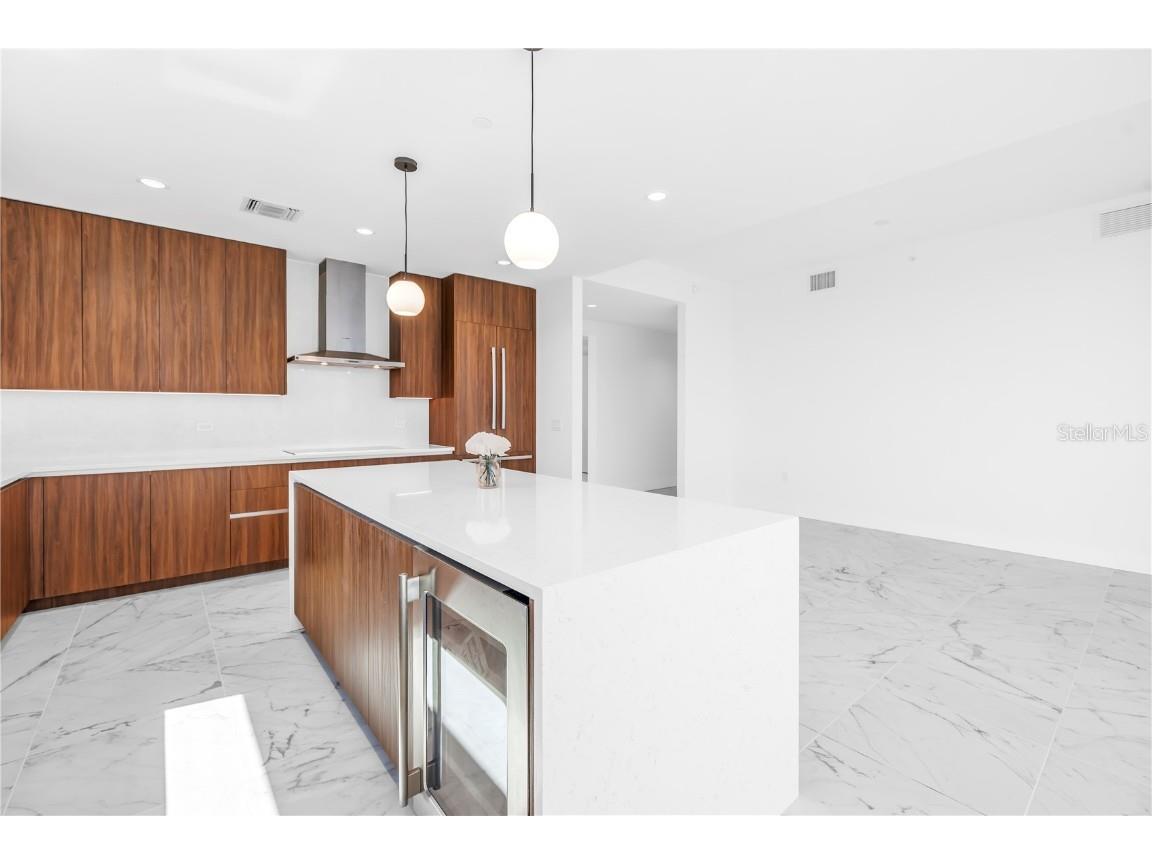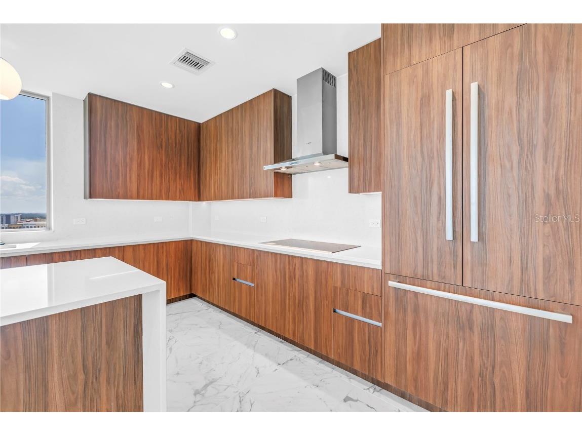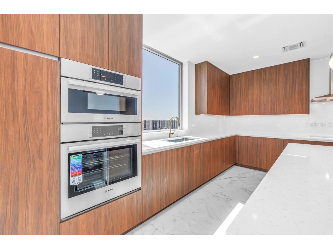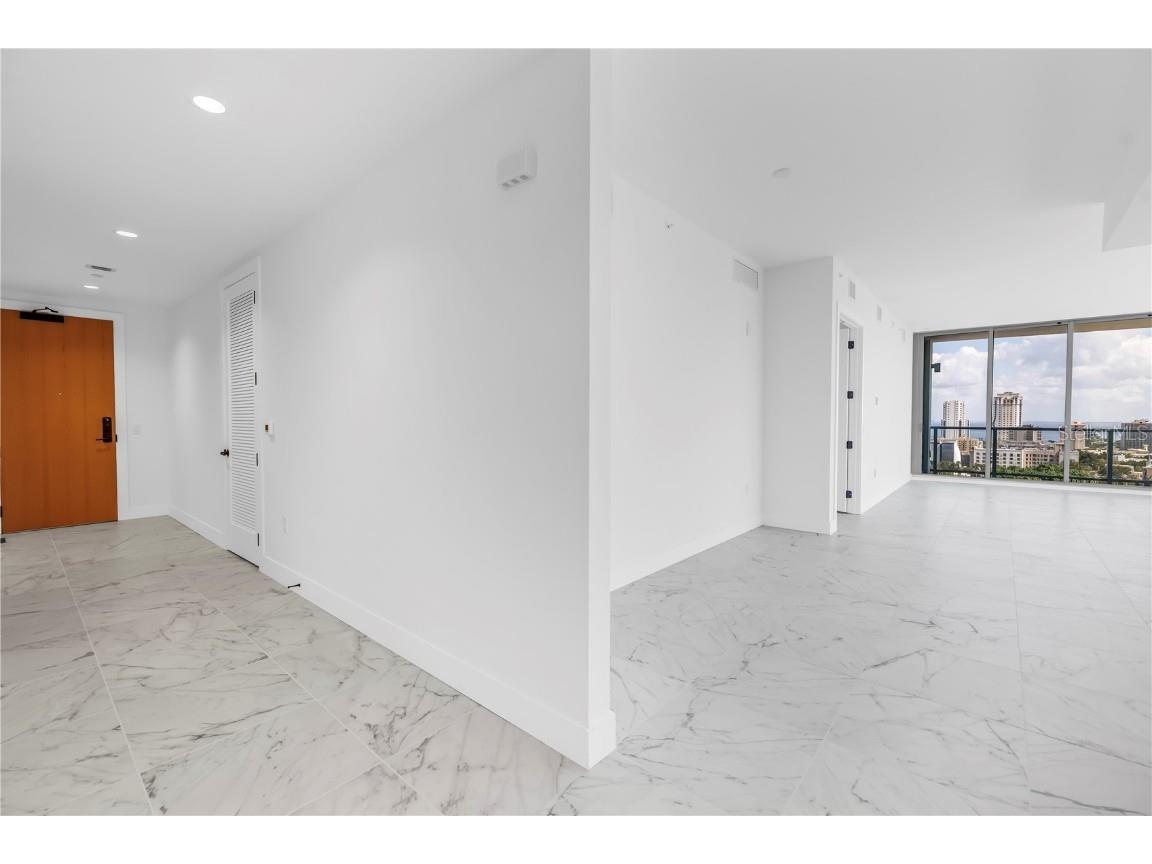 REFLECTION St. Pete introduces the Lapis residence—a stunning 16th-floor premier corner home that captures the essence of elevated downtown living. Spanning nearly 2,300 square feet, this 2-bedroom plus den, 2-bath residence showcases expansive floor-to-ceiling glass and a private terrace with sweeping, protected views of the city skyline, Mirror Lake, and Tampa Bay. With historic properties surrounding the building, the eastern lake views will remain unobstructed for years to come. Inside, the Lapis features 10-foot ceilings, upgraded porcelain tile floors, and a modern kitchen with quartz countertops, panel-ready Bosch appliances, and a Thermador wine fridge built into the kitchen island. A window over the sink frames tranquil lake and skyline views, while the open layout creates a seamless flow between living, dining, and outdoor spaces. The primary suite includes a European-style wet room, upgraded fixtures, and both reach-in and walk-in closets. The second bedroom is generously sized, and the den provides flexible space for a home office or guest room. Two assigned parking spaces are included. Residents enjoy exclusive access to a 12,000-sq-ft rooftop oasis with a heated saltwater pool and spa, glass-walled fitness center, social club, fire pit lounge, and outdoor kitchen—all set against panoramic city and bay views. Designed for both luxury and longevity, REFLECTION features REME Halo air filtration, a water softening system, and touchless entry. Its resilience through recent hurricanes showcases the building’s superior construction and lasting quality. Perfectly located just steps from Central Avenue’s dining, shopping, and arts scene, the Lapis residence offers the ultimate blend of sophistication, comfort, and protected panoramic views in the heart of downtown St. Petersburg.
