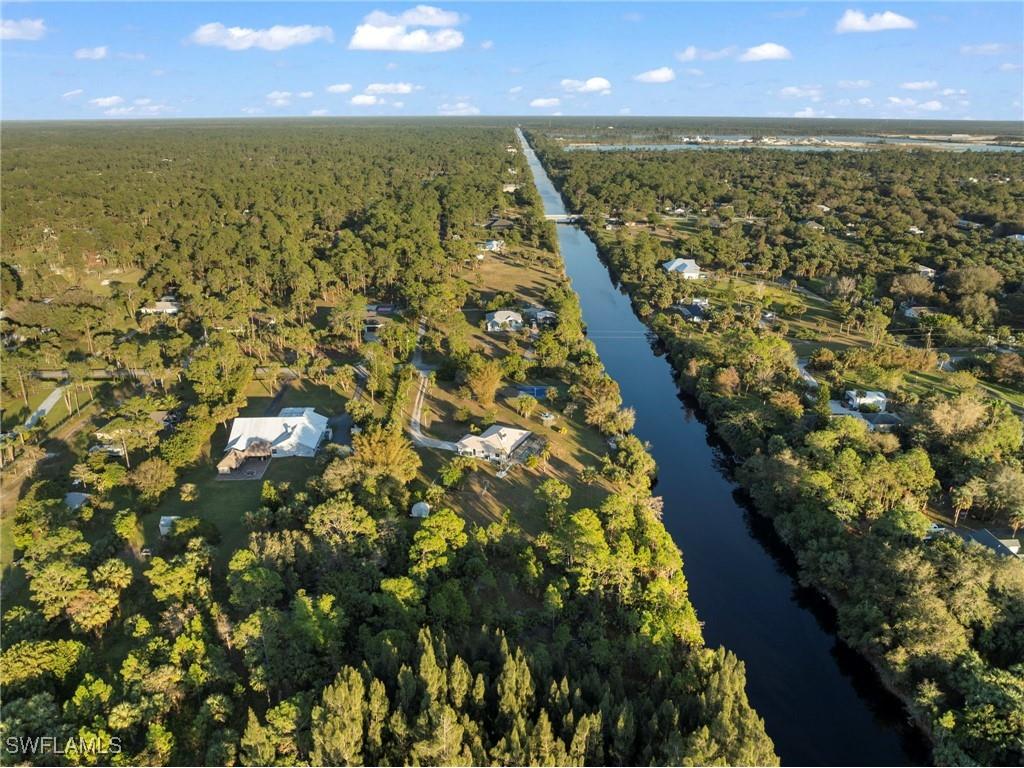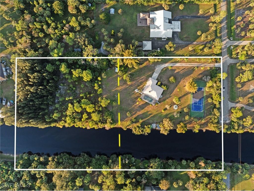 5.38 acre WATERFRONT homesite west of Wilson Blvd. This oversized property offers a unique blend of Florida living and privacy, nestled along a tranquil canal. The updated residence is being sold with negotiable furnishings, making it ready for immediate move-in. The estate’s outdoor features are perfect for both active and leisurely lifestyles, including a private tennis / pickle ball / basketball court, and a fenced-in homesite surrounded by lush greenery for ultimate privacy. This unique property includes a private dock—ideal for kayaking, paddle boarding, boating, and fishing—adding to the endless entertainment options. Imagine sitting on the dock overlooking the sparkling water, listening to the birds, and watching the sunset. This homesite also features a fire pit, a fenced-in dog run and house. Endless Possibilities — property can be subdivided and sold separately or used to build your main home, while using the existing structure as a guest house or an investment opportunity for income. This flexibility makes the property ideal for future development or a multi-generational estate. It’s perfect for adding an outbuilding, an orchard with your favorite fruit trees, or a garden. You can also keep horses, chickens, or other livestock. Inside, the home features a bright and inviting open-concept floor plan, with a white kitchen showcasing modern cabinetry, quartz surfaces, and stylish finishes. Designer-style lighting throughout creates a sophisticated yet comfortable ambiance. Cozy up next to the fireplace on chilly Southwest Florida evenings. Located just a short drive from Gulf of Mexico beaches, dining, shopping, airports, and more. This property offers a perfect blend of luxury, convenience, and endless possibilities. Whether you’re seeking a peaceful retreat or a home with room to expand, this homesite truly has it all.