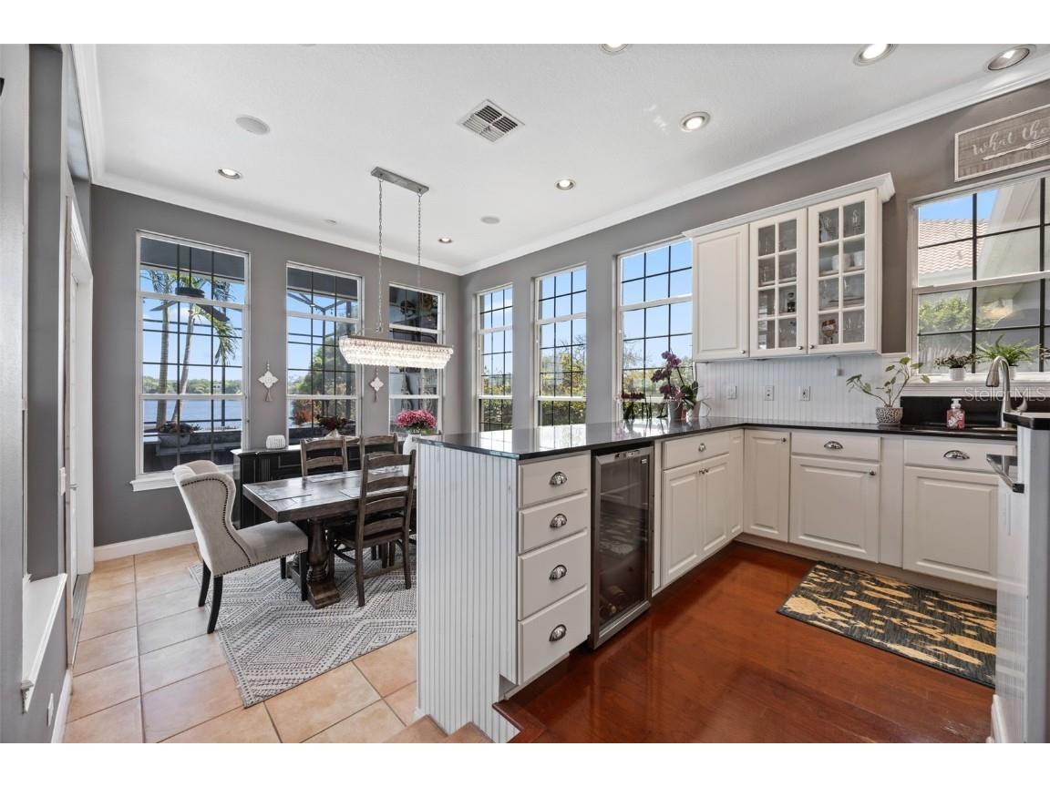 Welcome to this exceptional lakefront estate in the exclusive gated community of Weatherstone, ideally situated on the serene shores of Lake Olivia in Windermere, Florida. This beautifully appointed residence offers 7 bedrooms, 4 full bathrooms & a rare combination of timeless architecture & modern luxury. From the moment you arrive, the home's curb appeal is undeniable. The expansive wrap-around front porch invites you to relax & enjoy the lush landscaping - an ideal spot for morning coffee or evening gatherings. Once inside, discover a sun-filled interior with soaring ceilings, Anderson wood flooring, plantation shutters, crown molding & custom designer finishes throughout. You will be in awe of the bright & airy layout - seamlessly connecting living & dining spaces with lake views from every room! The heart of this home is the Kitchen - centrally located to all entertaining areas. Holidays & Family nights will be a breeze with ample counter space, large island with new stove (Nov 2025), SS appliances & large eating area w/new tile (Nov 2025) that seamlessly bring the outdoors inside. You will not be short of storage with the 42" cabinets & 2 oversized walk-in pantries, one with a hidden bar area! The Primary Bedroom is a true sanctuary, with lakefront views, an oversized custom closet & shutters for privacy. You will find peace & relaxation in your luxurious & newly remodeled (2023) en-suite bathroom appointed with custom Quartz dual vanities, soaking tub & luxurious walk-in shower. The main level of this property offers a generous Den/Study appointed with custom built-in's, a bedroom (that can be converted back to a formal Dining Room) & full size bathroom (remodeled 2023) conveniently located to the Living areas. As you make your way upstairs, note the gorgeous wood stairwell & upgraded LightStyle Crystal Fixtures! The 2nd floor is the HUB of family & yet offers privacy & space for all. A dedicated "work station" with custom built-in's & quartzite. You will also find 4 bedrooms - each set with newly remodeled Jack & Jill bathrooms (2023), brand new carpeting (2025) & walk in closets. On the other side of the landing you will find your 7th bedroom & oversized Bonus Room with closet. If 7 bedrooms aren't enough, this could also count as an additional one! This expansive residence shows pride of ownership & organizational conveniences with a dedicated Laundry Room on the 1st floor, ample storage areas, Newer Tile Roof (2023), Exterior Paint (2021) & Front porch ceiling & floors painted (Nov 2025). Let's not forget the 3-Car Garage w/dedicated storage & Epoxy Coating. Perfect for year-round entertaining, the outdoor living area boasts a covered lanai, summer kitchen, resort style pool (resurfaced 2023), Pool Pump (Nov 2025), Dog Run w/artificial turf (2024),Trex Boat Dock w/Lift (2019) & Fire Pit - all overlooking tranquil Lake Olivia. Weatherstone is an exclusive gated enclave of only 13 estate homes with a convenient private gate & walking distance to Yellow Dog Eats & Gotha Park. Conveniently located just minutes from Windermere’s charming town center, top-rated schools, and world-class golf, this home offers rare lakefront elegance in one of Central Florida’s most coveted communities.