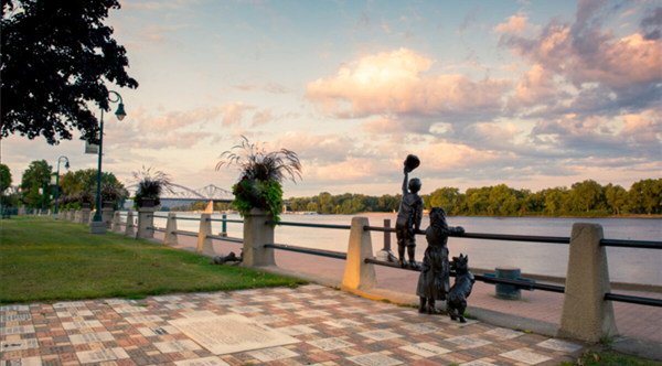 Located along the Mississippi River, this park is a hub for community events and offers scenic walking paths, gardens, and riverboat cruises.