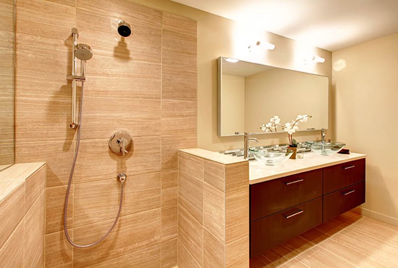 In the past, Jacuzzi tubs have dominated the luxury bathroom scene, but today’s high-end bathrooms are all about the showers. Oversized showers, especially those with his and hers shower heads, are growing in popularity as modern homeowners eschew baths. Tankless water heaters ensure that no matter how long you stay in the shower, you’ll never run out of hot water.