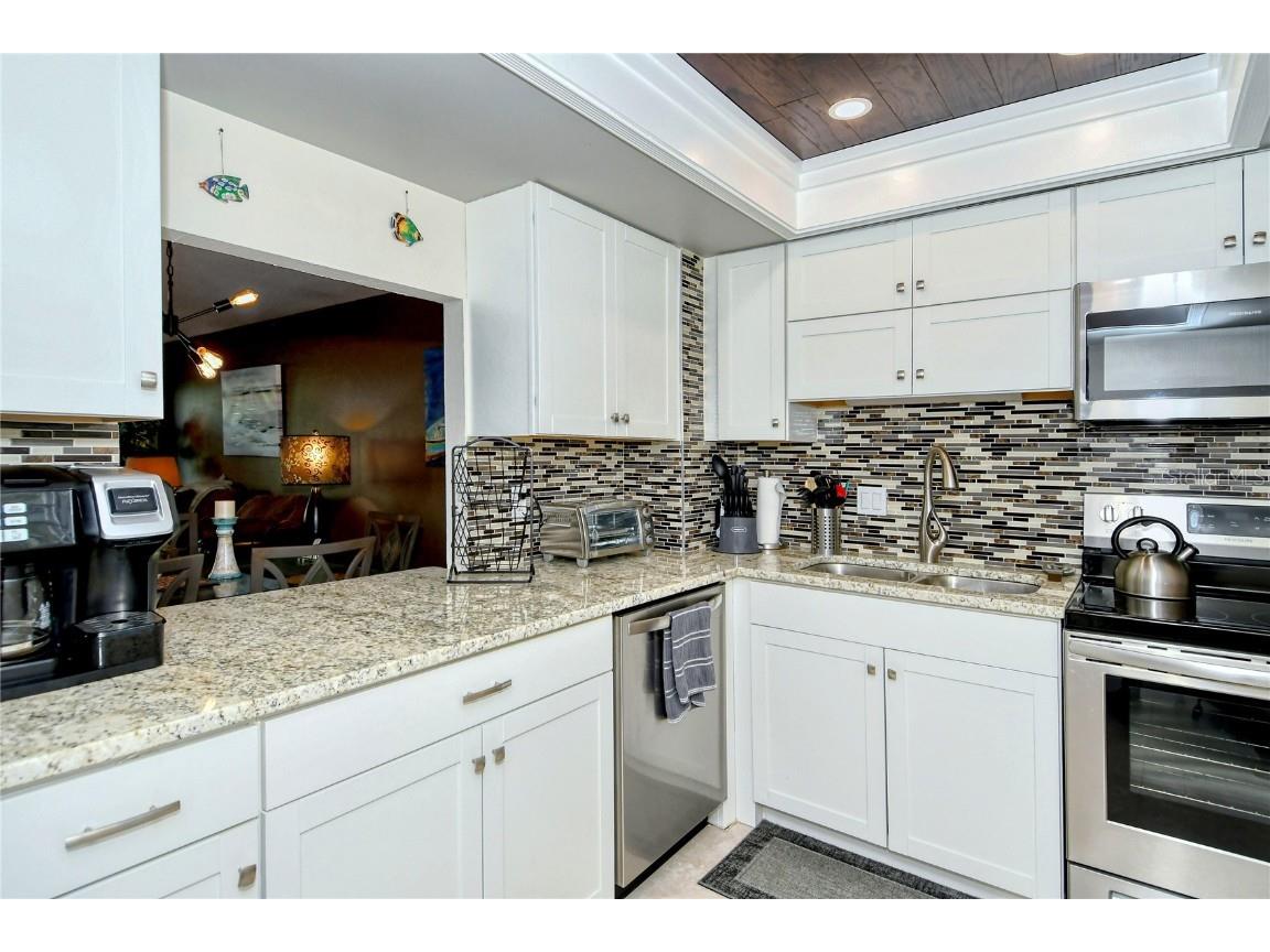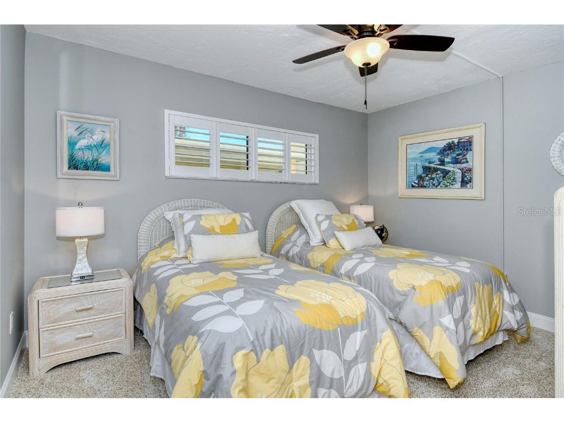 Welcome to Siesta Harbor! Siesta Key Turnkey furnished ground floor 2/2 condo. Remodeled with beautiful kitchen, new stainless steel appliances, granite countertops, remodeled bathrooms and nice décor. King bed in master bedroom, two twins in second bedroom. One month minimum rental. This over 55 community is ideal for your island beach vacation. Enjoy a cocktail or your morning coffee from the lanai overlooking the boat slips and the Intracoastal waterway. Amenities include deeded beach access to the #1 rated beach - a 5 minute walk across the street, heated community pool and spa, sauna, shuffleboard, community room with library and pool table, BBQ grills and picnic area. A gym and fishing pier are also on site. Enjoy water aerobics classes Monday-Friday as well as other organized gatherings and happy hours at the club house. Convenient to shops, restaurants, delicatessens and grocery stores. Laundry not in unit, however it's conveniently located at no expense. No car needed as everything is close by. A free trolley runs up and down the island taking you to all that Siesta Key has to offer including Siesta Key Village shops and restaurants, numerous outdoor bars and restaurants and Public beaches. Close proximity to Stickney Point Bridge enables easy access on and off the Key. High season rate of $6500 January through April (Leased Dec. 1st 2025-May 30th 2026) Application Fee $150; $500 security deposit and 14% taxes due from guest. Exit cleaning fee $175 deducted from security deposit. One occupant must be 55 or over to rent this unit. Sorry, no pets allowed. 1 car allowed on the property.