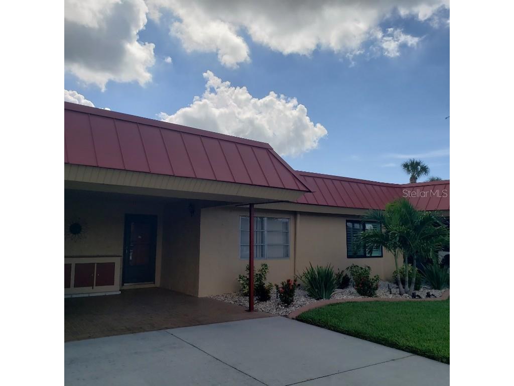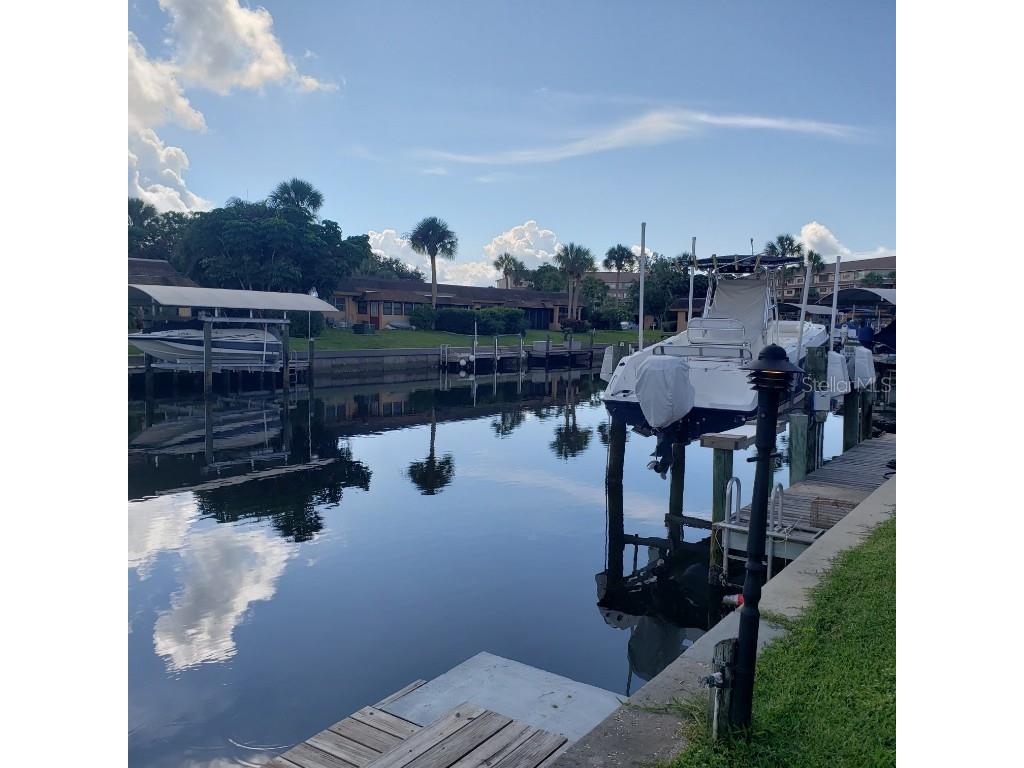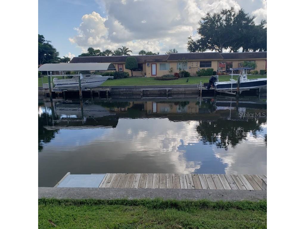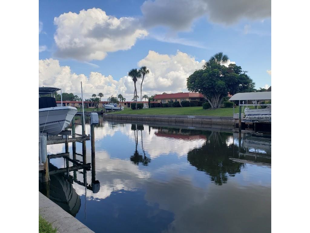 Waterfront Villa with Canal Views – Pet Friendly! Welcome to this nicely furnished two-bedroom, two-bath ground-level villa located on a tranquil canal—where dolphins and manatees are known to stop by for a visit! This updated villa features modern flooring and a renovated kitchen with a breakfast bar, perfect for casual meals or entertaining. The open-concept living and dining area flows seamlessly into a light-filled Florida room, offering an inviting space to relax indoors while enjoying the view. The primary bedroom includes a queen bed and en suite bath with a walk-in shower. The guest bedroom also has a queen bed and a full bath with a tub/shower combination. Step outside to your patio overlooking the water—fully equipped with a table, chairs, and umbrella for alfresco dining. There’s also an attached carport with extra storage and a dock, ideal for watching marine life up close. And yes—your well-behaved fur-friend is welcome! Located just 4 miles from the beach, this peaceful retreat blends nature, comfort, and convenience.