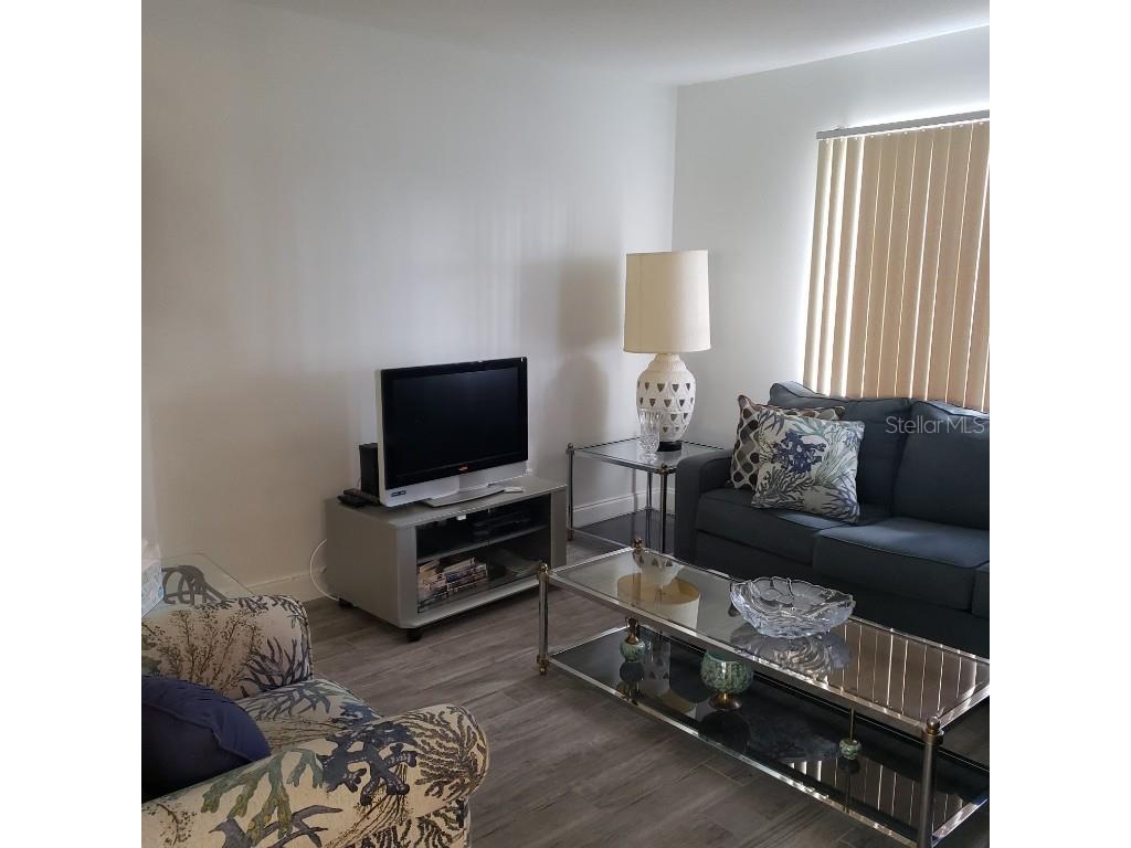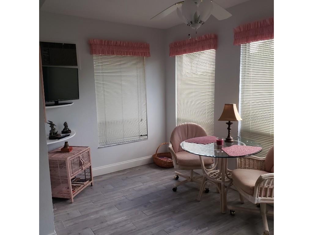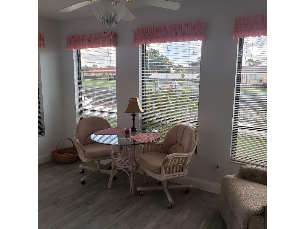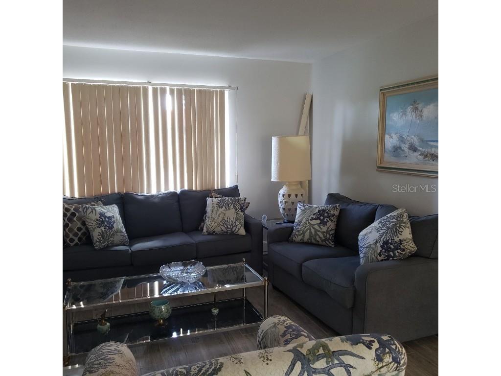 Waterfront Villa with Canal Views – Pet Friendly! Welcome to this nicely furnished two-bedroom, two-bath ground-level villa located on a tranquil canal—where dolphins and manatees are known to stop by for a visit! This updated villa features modern flooring and a renovated kitchen with a breakfast bar, perfect for casual meals or entertaining. The open-concept living and dining area flows seamlessly into a light-filled Florida room, offering an inviting space to relax indoors while enjoying the view. The primary bedroom includes a queen bed and en suite bath with a walk-in shower. The guest bedroom also has a queen bed and a full bath with a tub/shower combination. Step outside to your patio overlooking the water—fully equipped with a table, chairs, and umbrella for alfresco dining. There’s also an attached carport with extra storage and a dock, ideal for watching marine life up close. And yes—your well-behaved fur-friend is welcome! Located just 4 miles from the beach, this peaceful retreat blends nature, comfort, and convenience.